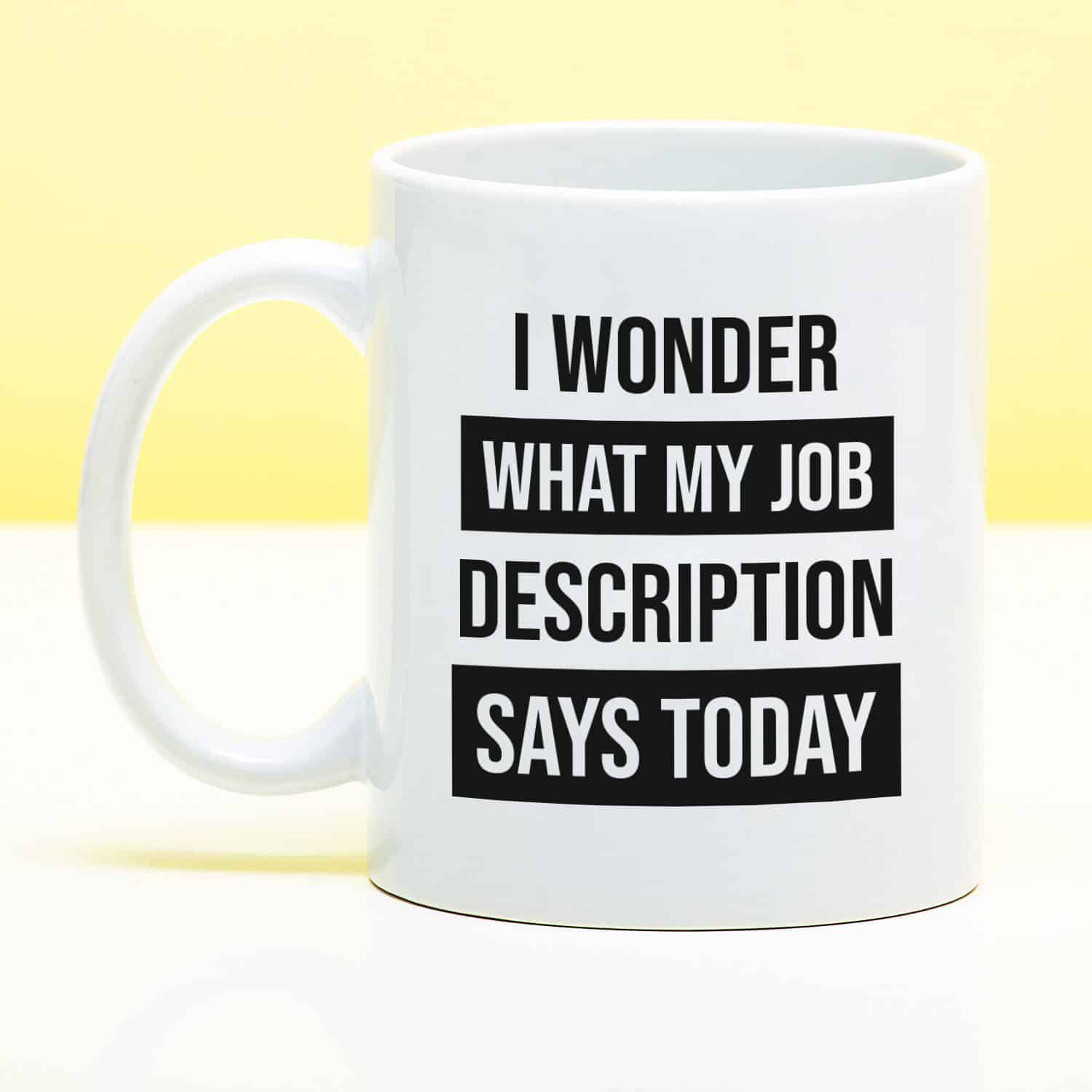 Mok met Tekst ‘’I wonder what my job description’’ | Materiaal: Keramiek | 33 cl | Mok met Tekst | Koffie Mok | Grappige Cadeau | Vaatwasser bestendig | Humor | Mok met grappige tekst
