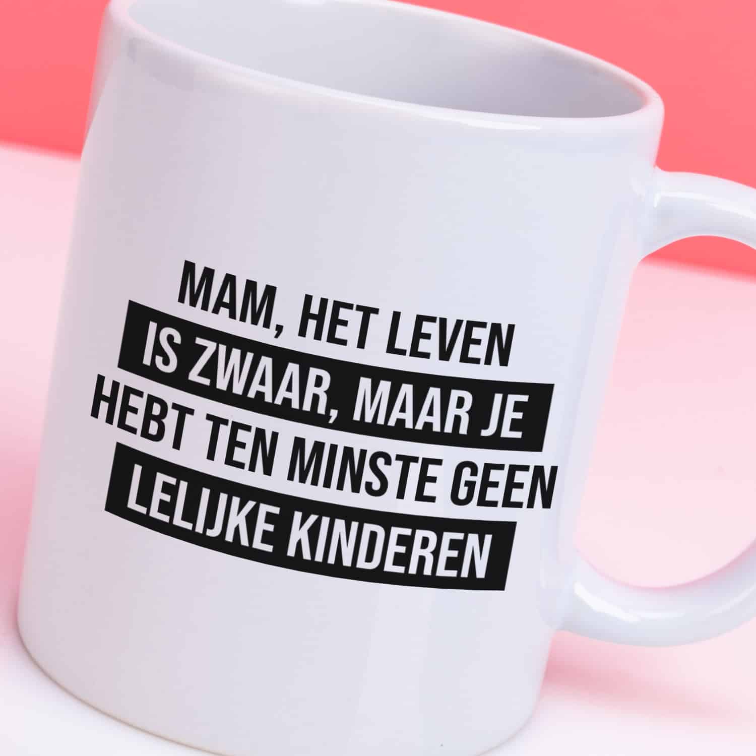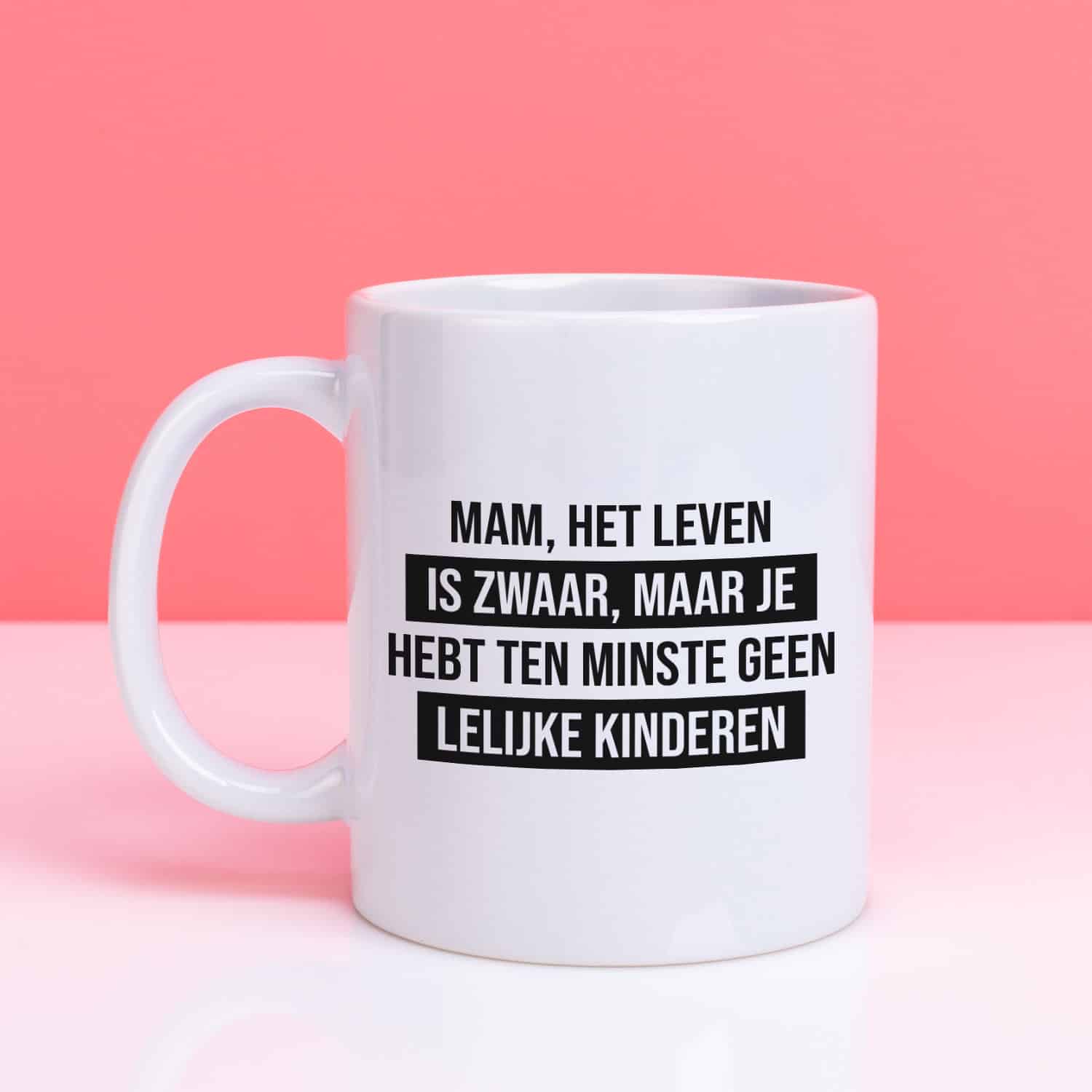 Mok met Tekst ‘’Mam het leven is zwaar’’ | Materiaal: Keramiek | 33 cl | Mok met Tekst | Koffie Mok | Grappige Cadeau | Vaatwasser bestendig | Humor | Mok met grappige tekst