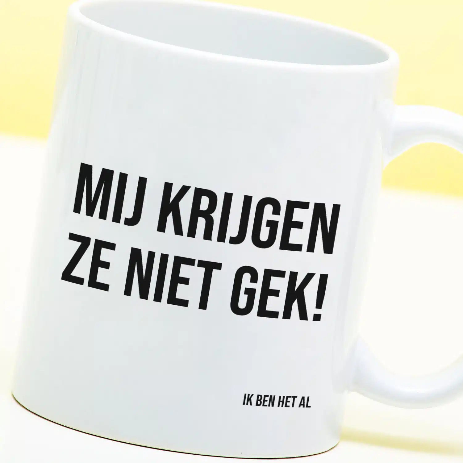 - Grappige mok met tekst: Mij krijgen ze niet gek
