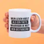 Mok met Tekst ‘’Mijn leven voelt als een toets’’ | Materiaal: Keramiek | 33 cl | Mok met Tekst | Koffie Mok | Grappige Cadeau | Vaatwasser bestendig | Humor | Mok met grappige tekst