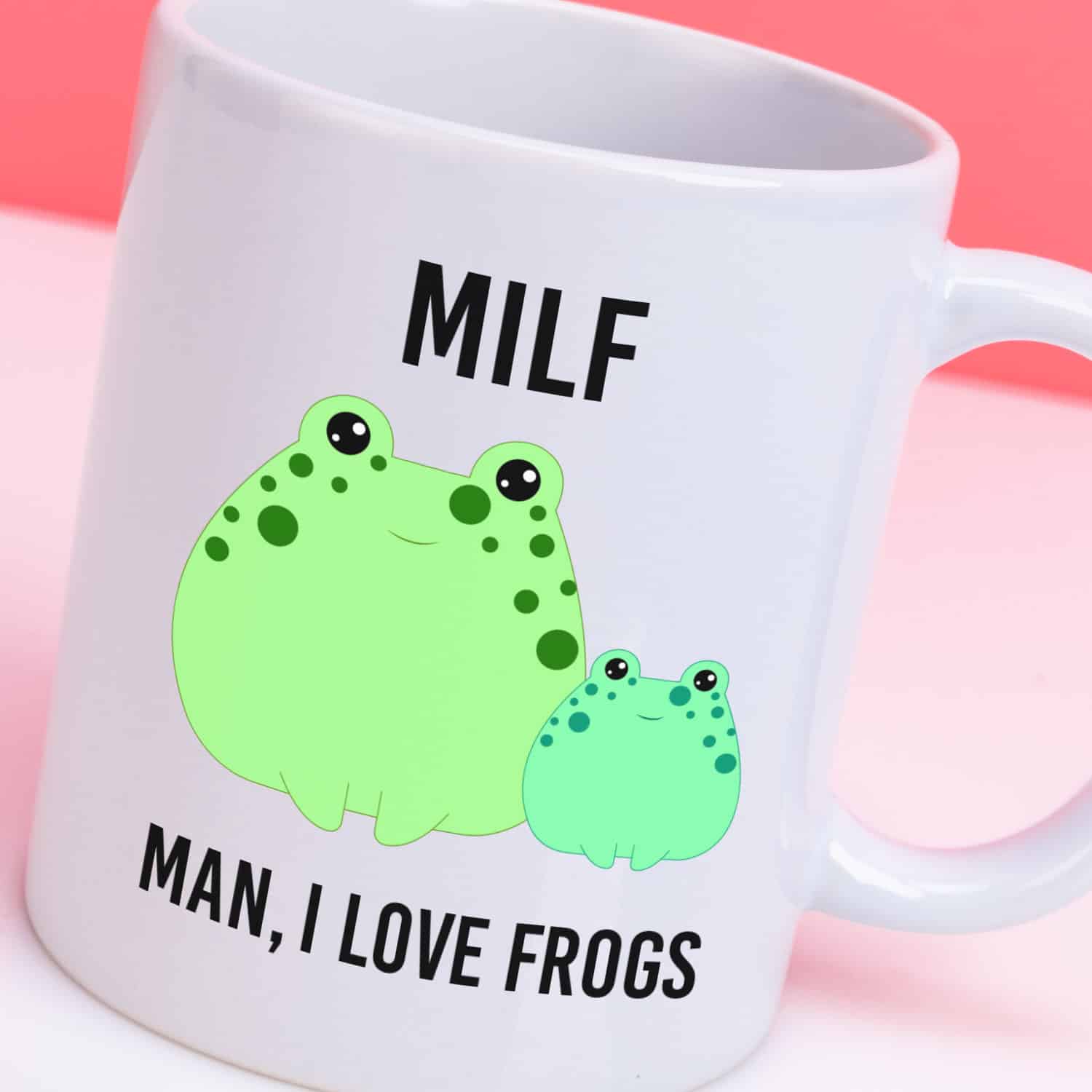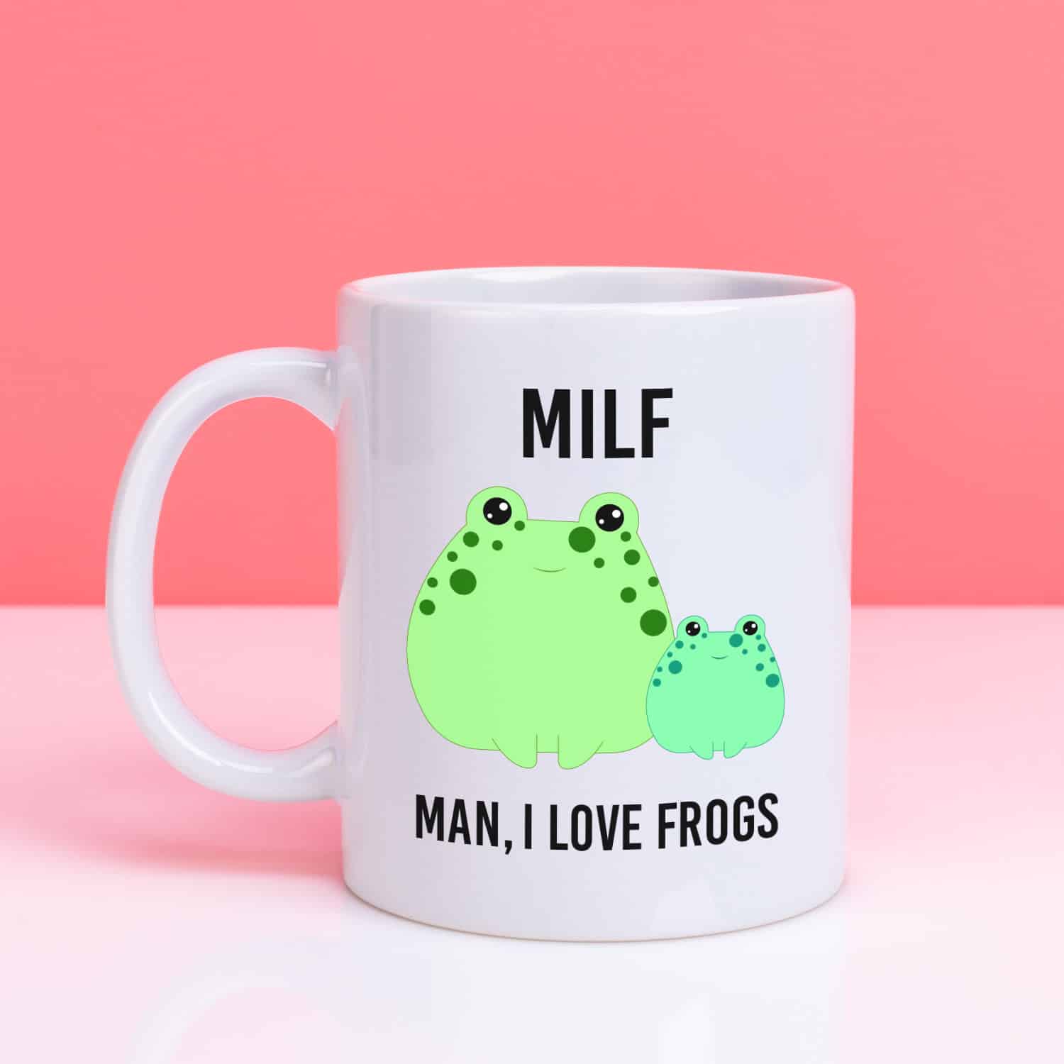 Geef het maar toe, toen je het woord MILF zag, dacht je niet aan kikkers. Maar dat is precies de grap van deze beker. Op de beker staan twee kikkers en de tekst: MILF: Man, I Love Frogs.