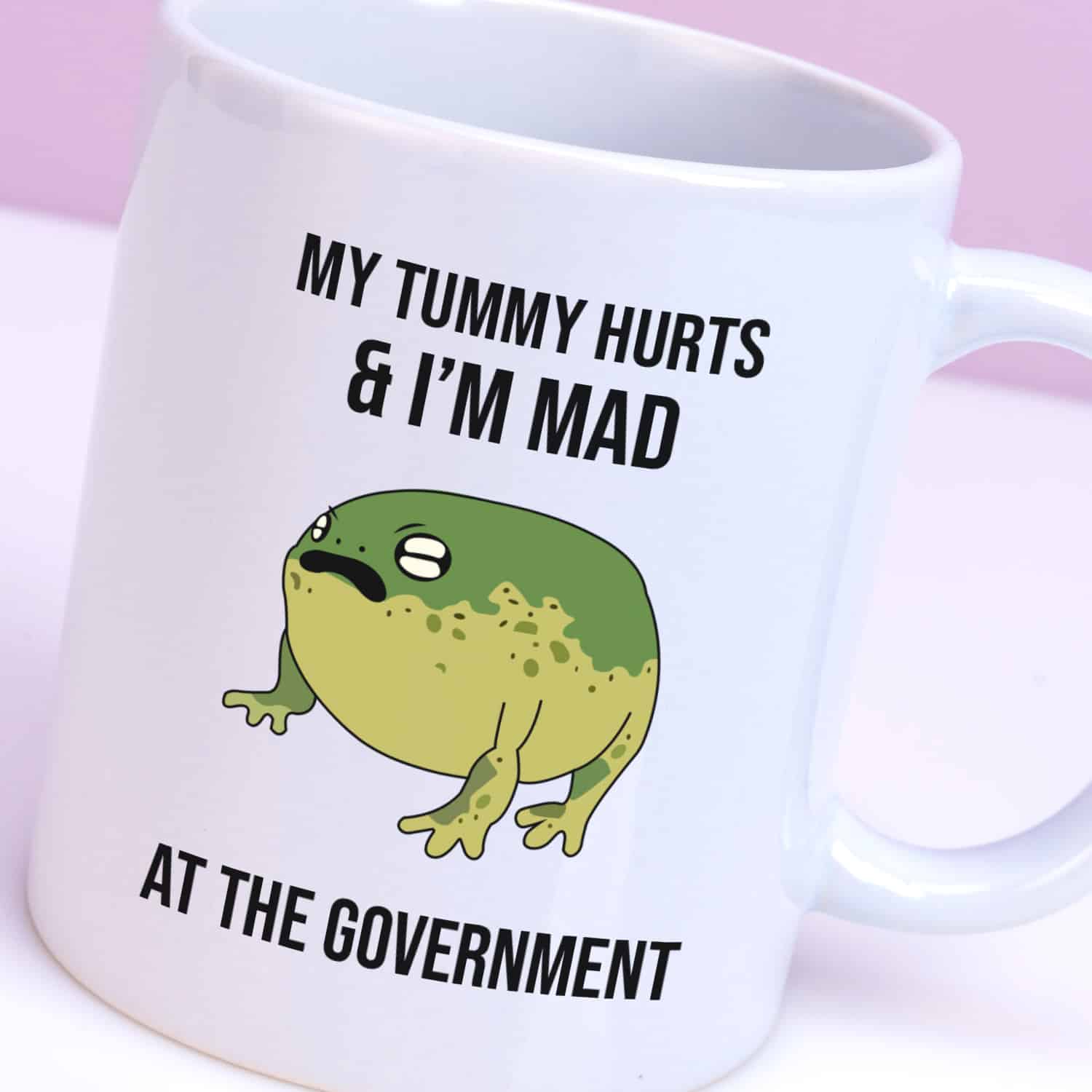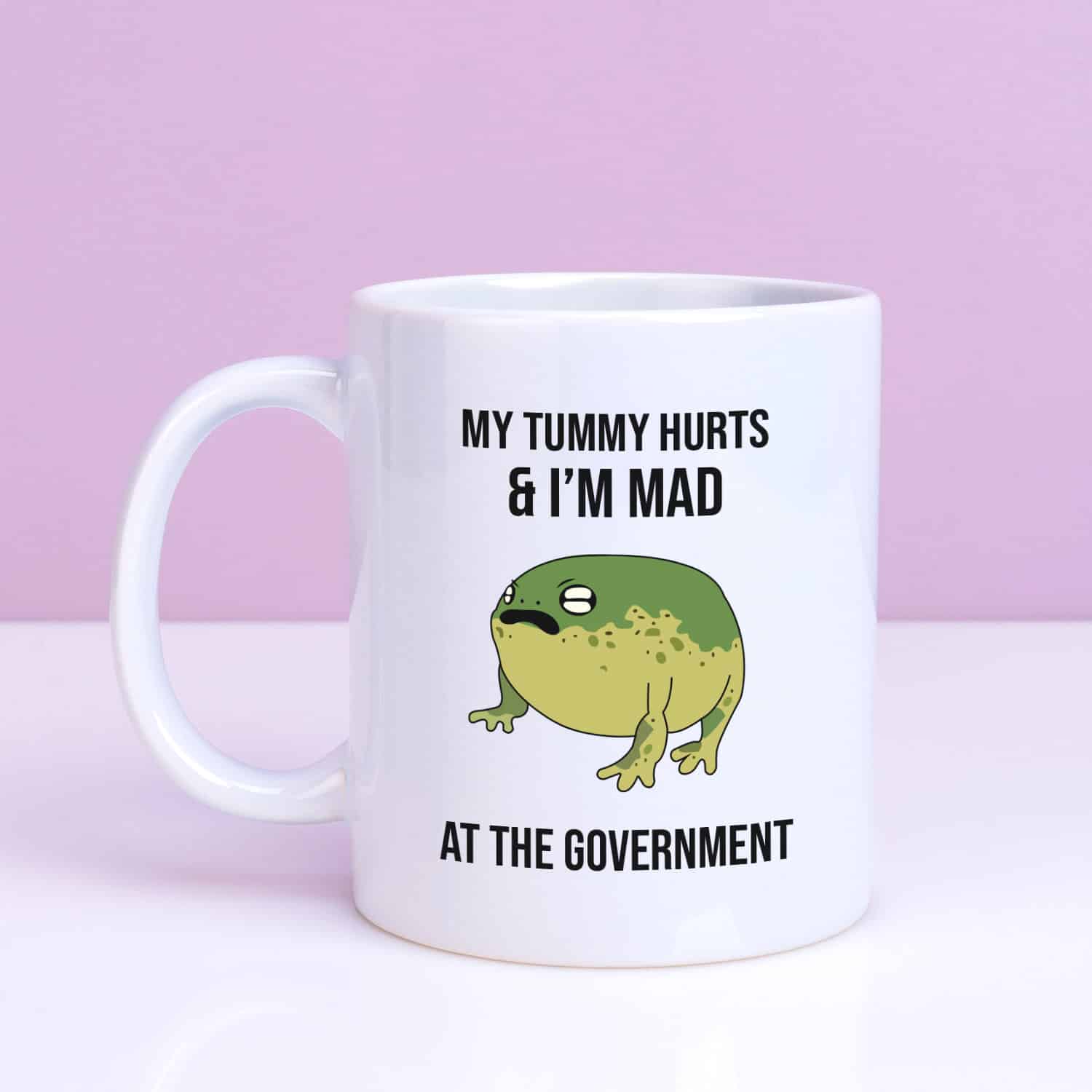 Mok met Tekst ‘’My tummy hurts and I’m mad at the government’’ | Materiaal: Keramiek | 33 cl | Mok met Tekst | Koffie Mok | Grappige Cadeau | Vaatwasser bestendig | Humor | Mok met grappige tekst