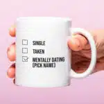 Mok met Tekst ‘’Single, dating, mentally dating’’ | Materiaal: Keramiek | 33 cl | Mok met Tekst | Koffie Mok | Grappige Cadeau |  Vaatwasser bestendig | Humor | Mok met grappige tekst