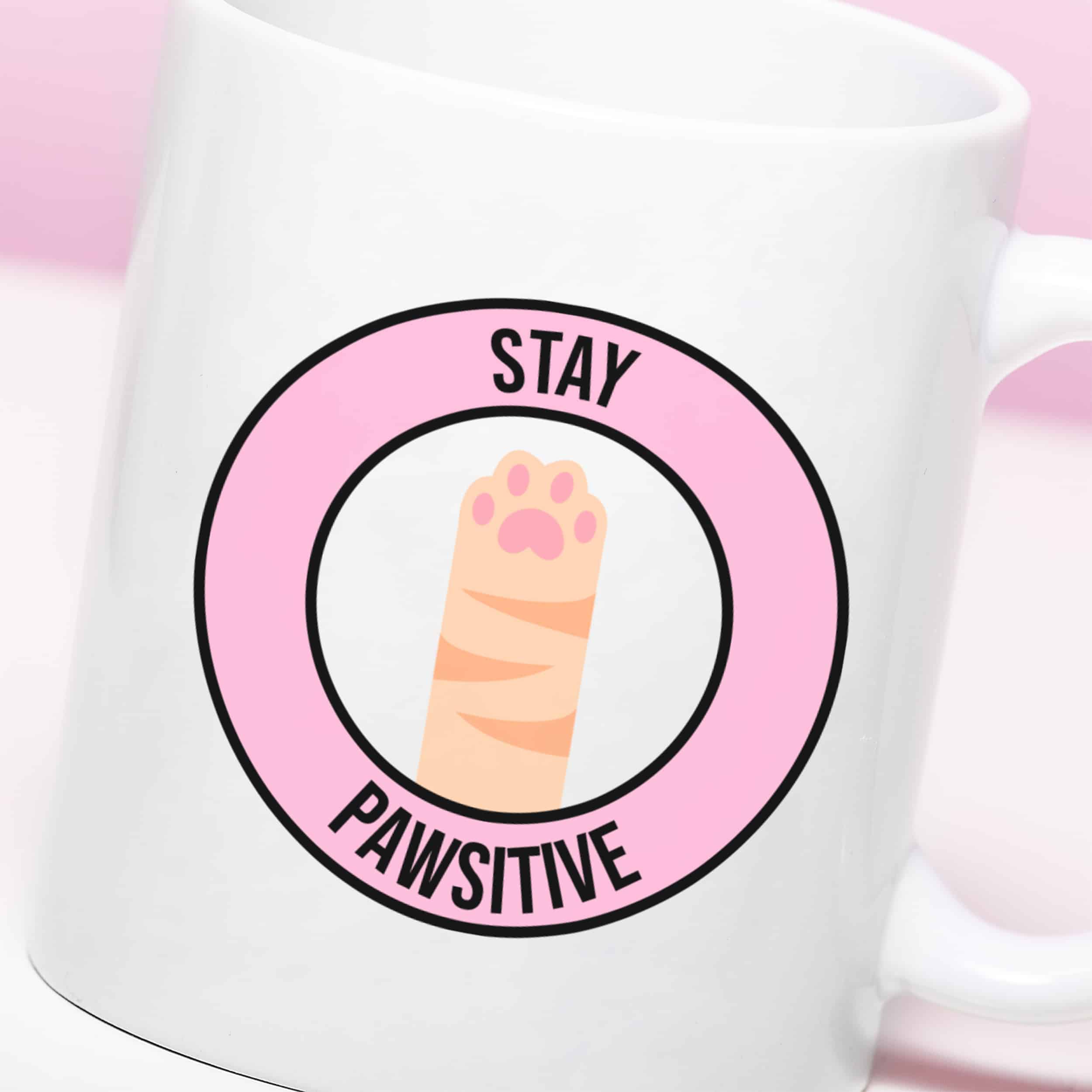De Mok Stay Pawsitive is voor iedereen die positiviteit combineert met kattenliefde. De beker, met een roze ontwerp, een kattenpootje en de tekst Stay Pawsitive, is de perfecte mok voor kattenliefhebbers die optimistisch door het leven gaan.