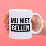 Gebruik hem zelf op het werk of geef hem cadeau aan een collega: de Mok Mij niet bellen. Deze grappige mok is altijd een succes, want het maakt je collega’s duidelijk dat ze hun eigen problemen moeten oplossen. En trouwens: wie belt er tegenwoordig nog?