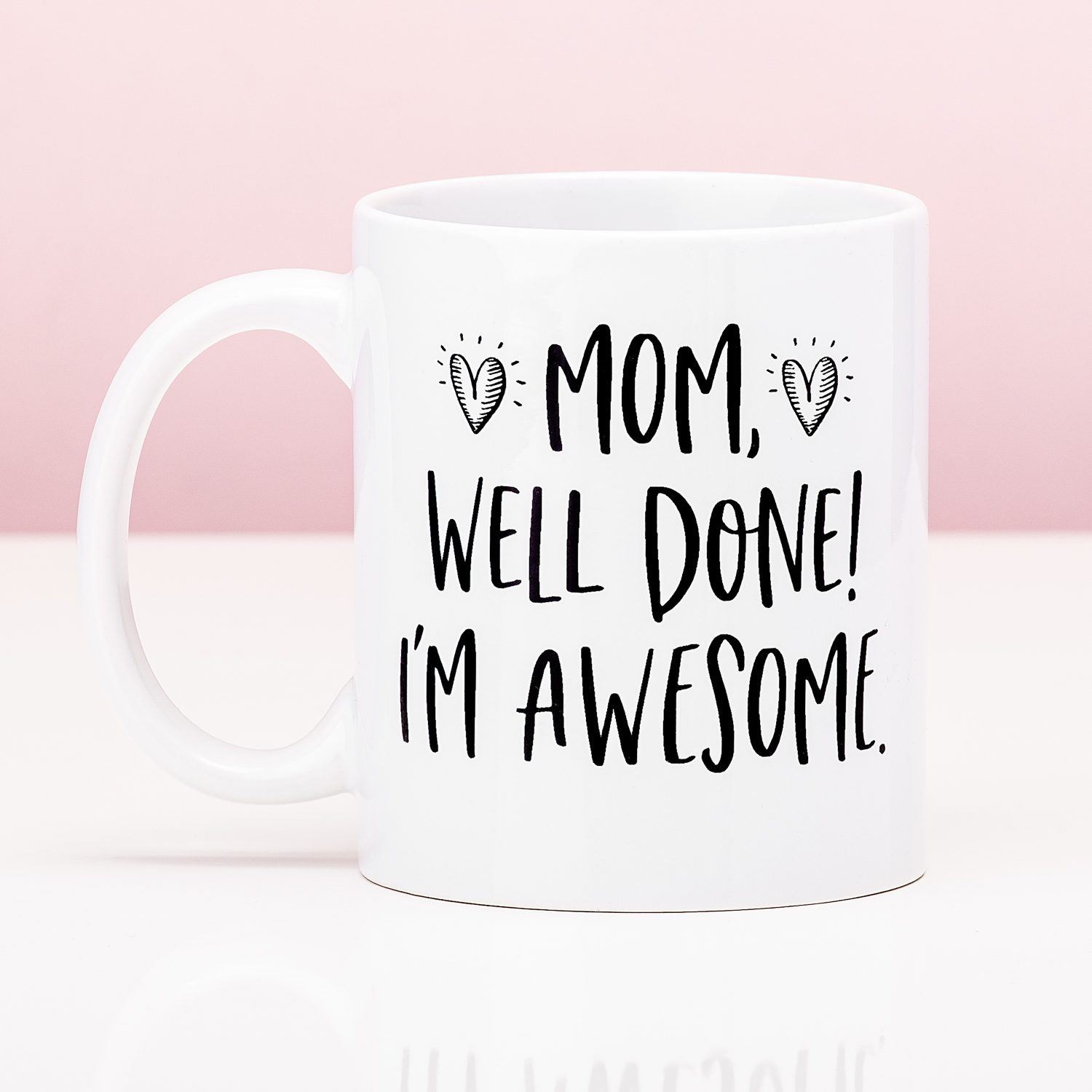 Moederdag, de verjaardag van je mams of zomaar een cadeautje: door je moeder iets liefs te geven laat je haar weten dat je dol op haar bent. Geef haar daarom de Mom, Well Done! I’m Awesome mok cadeau. Hiermee laat je weten dat ze je enorm trots maakt. Hoe trots? Nou, heel trots! Jij bent tenslotte een geweldige zoon of dochter.