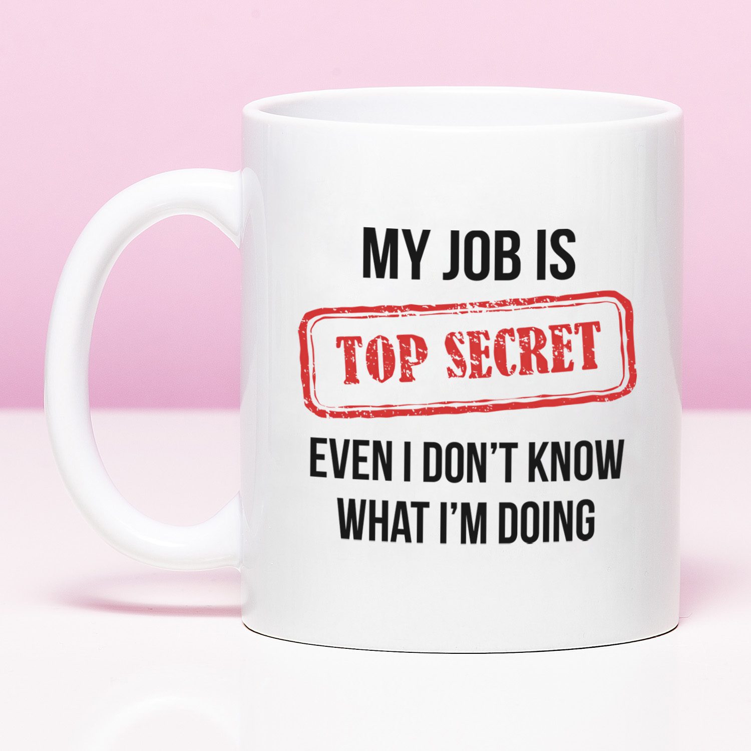 Heb jij een origineel cadeautje nodig voor een collega? De Mok My Job Is Top Secret is misschien leuk voor diegene. Helemaal als die persoon graag naar crime-series kijkt. Op de mok staat de tekst My job is top secret, even I don’t know what I’m doing. De woorden top secret lijken hierbij op een stempel die je in series vaak op documenten ziet staan.