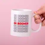 Hoe vaak heb je de reactie OK Boomer al gehoord (of gegeven) als een babyboomer weer iets beter dacht te weten? Met de Mok OK Boomer laat je ouders, leraren en collega’s precies weten hoe je denkt over hun conservatieve ideeën. Hou hem zelf of geef hem als cadeautje aan je vrienden die ook graag de barricades opgaan. De beker kan gewoon in de vaatwasser en magnetron en wordt bedrukt met hoge kwaliteit sublimatieprint.