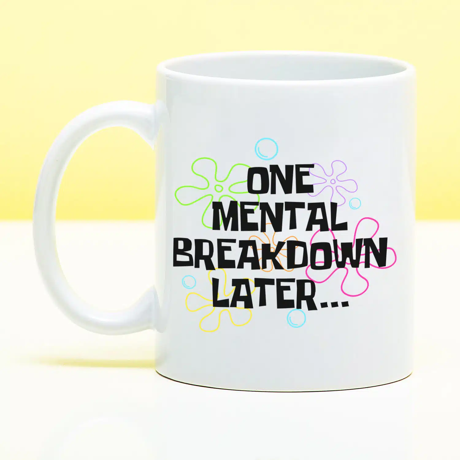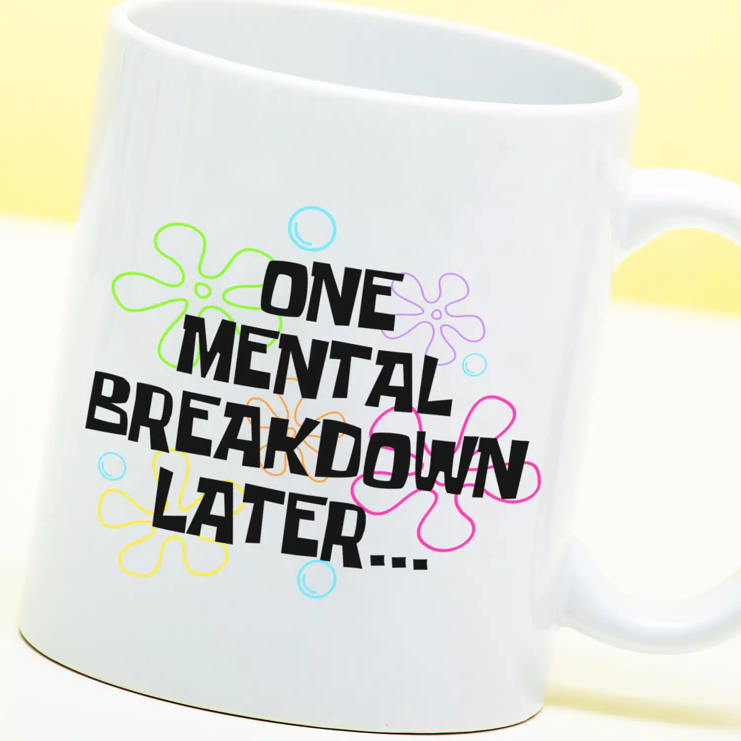 De Mok One mental breakdown later… is een humoristische mok die de stress van het dagelijks leven perfect samenvat. Ideaal voor kantoor of tijdens je studie.