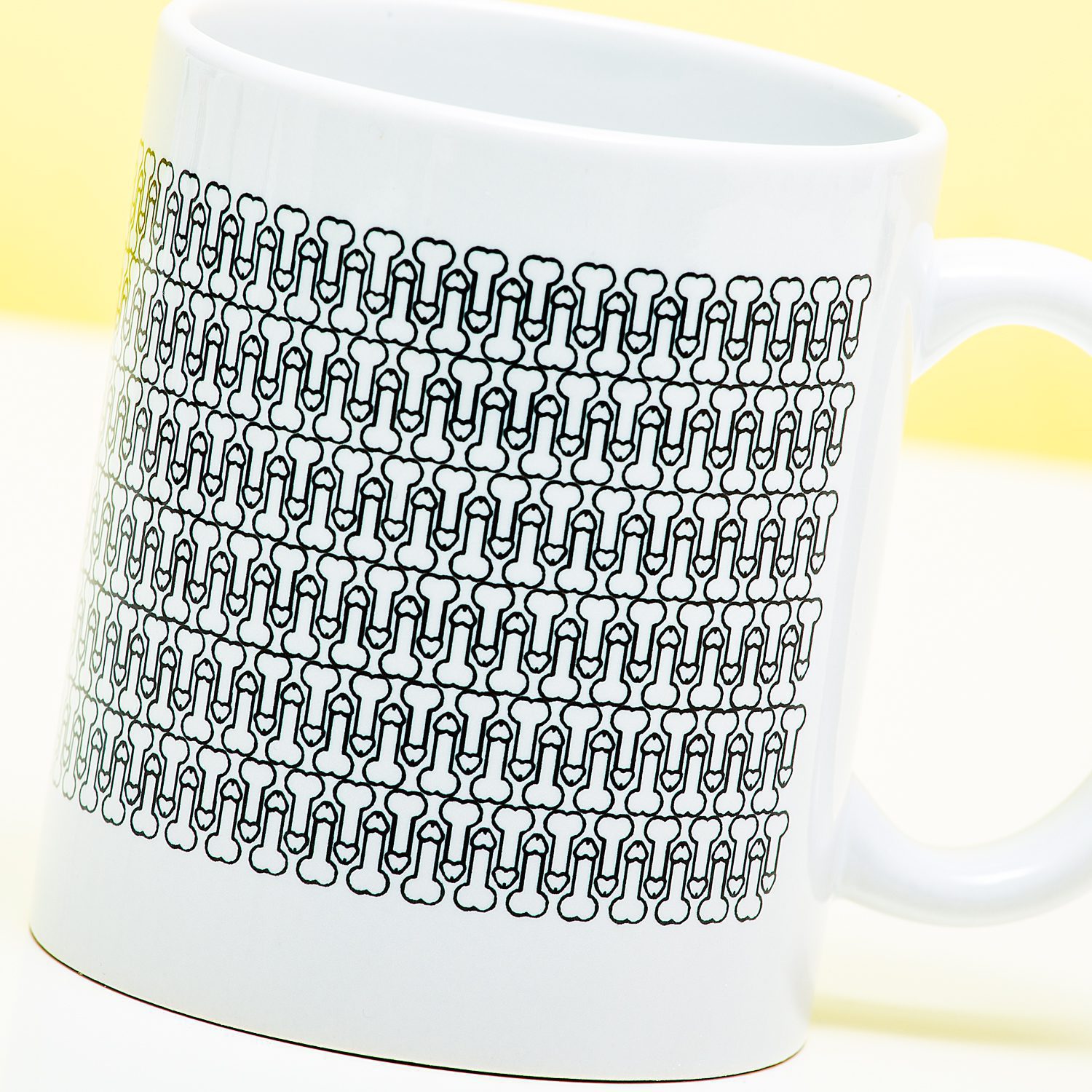 Je moet er maar zin hebben: je eerste kop koffie drinken uit de Mok Piemels. Deze koffiebeker is helemaal bedrukt met honderden piemels. Voor iemand die wel heel dol is op dit lichaamsdeel (of voor een vrijgezellenfeestje).