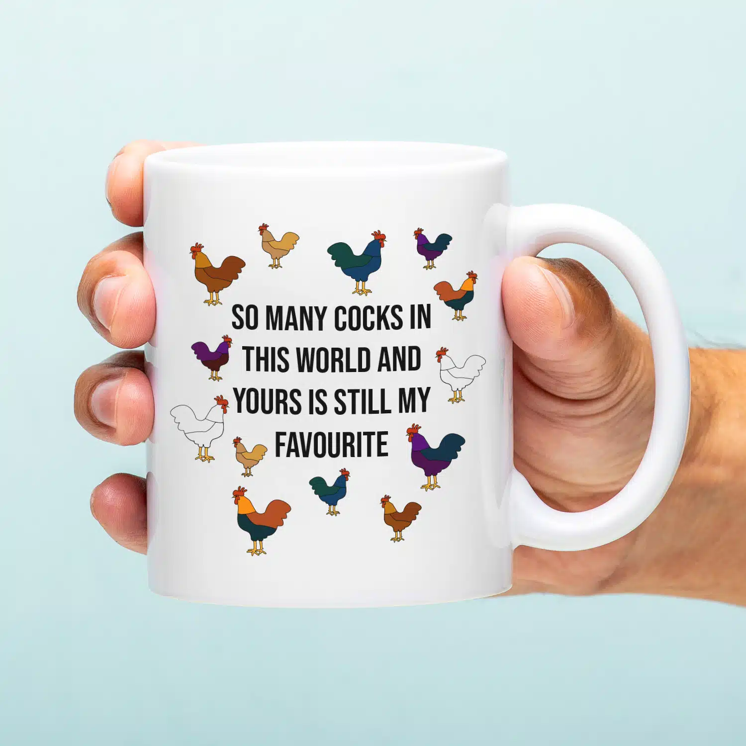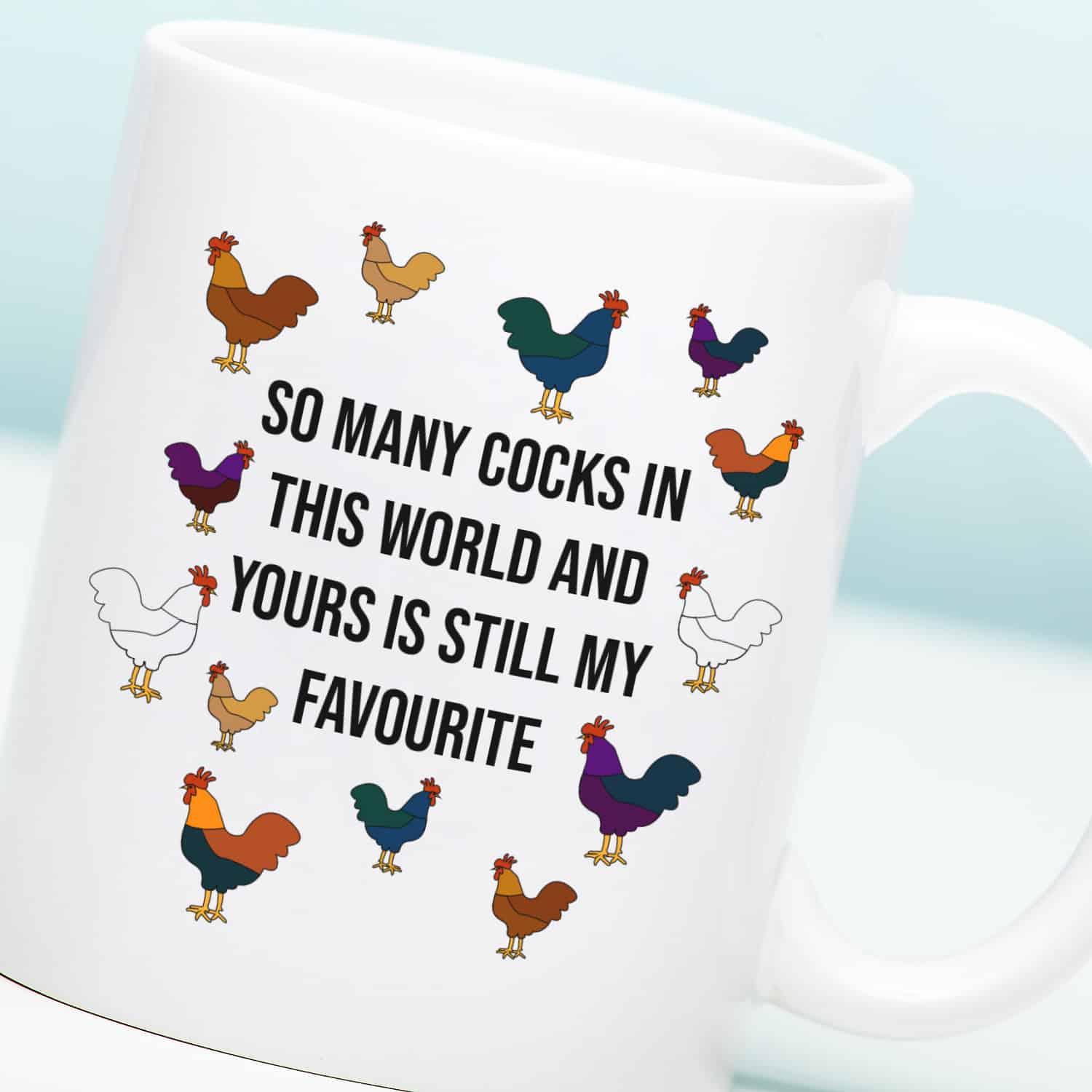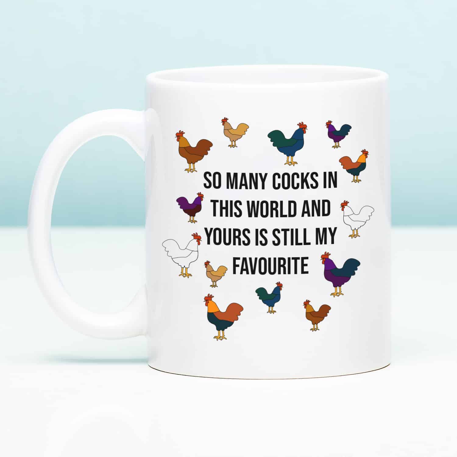 De Mok So Many Cocks is voor iedereen die van kippen houdt én van een goede dubbelzinnigheid. De beker, met kleurrijke haantjes en de tekst: So many cocks in this world and yours is still my favourite, is een speelse mok voor mensen met humor.