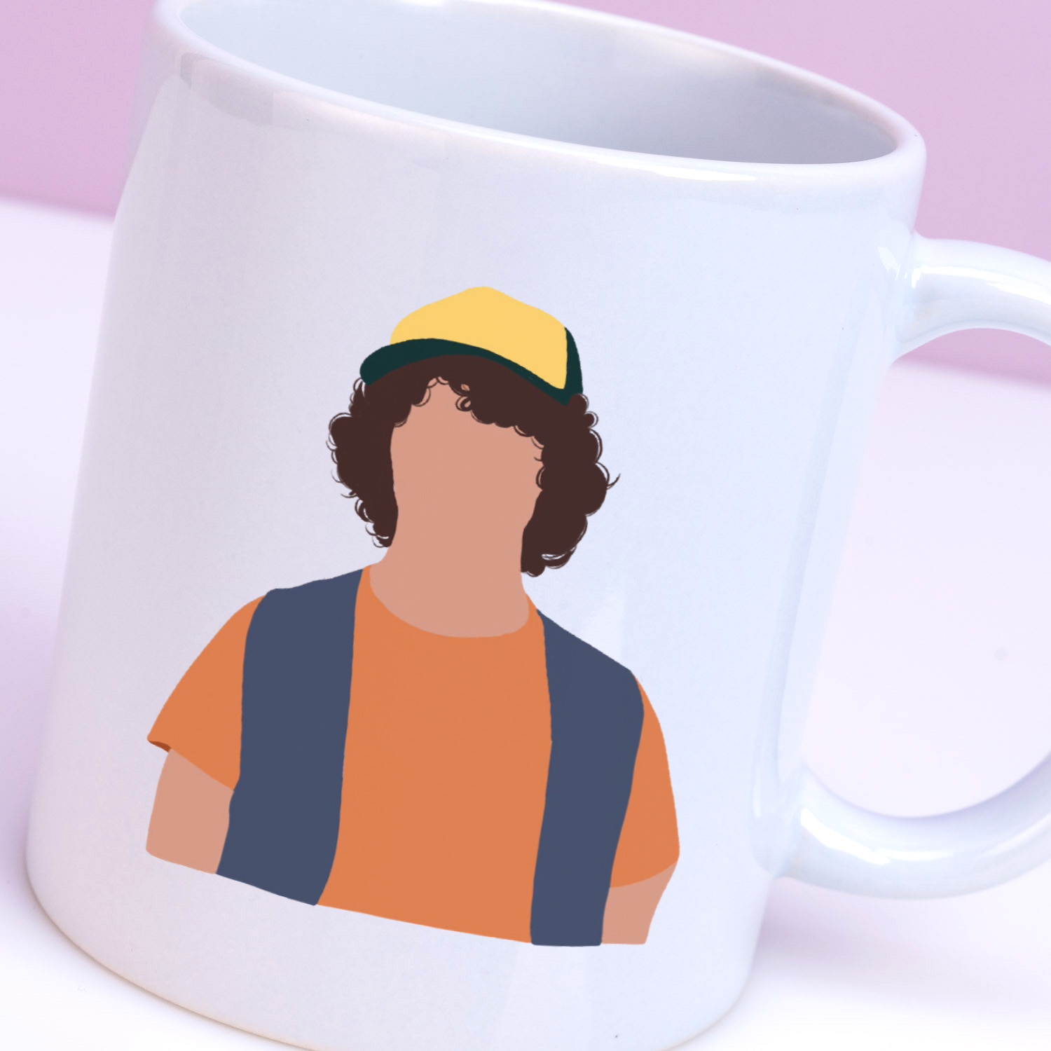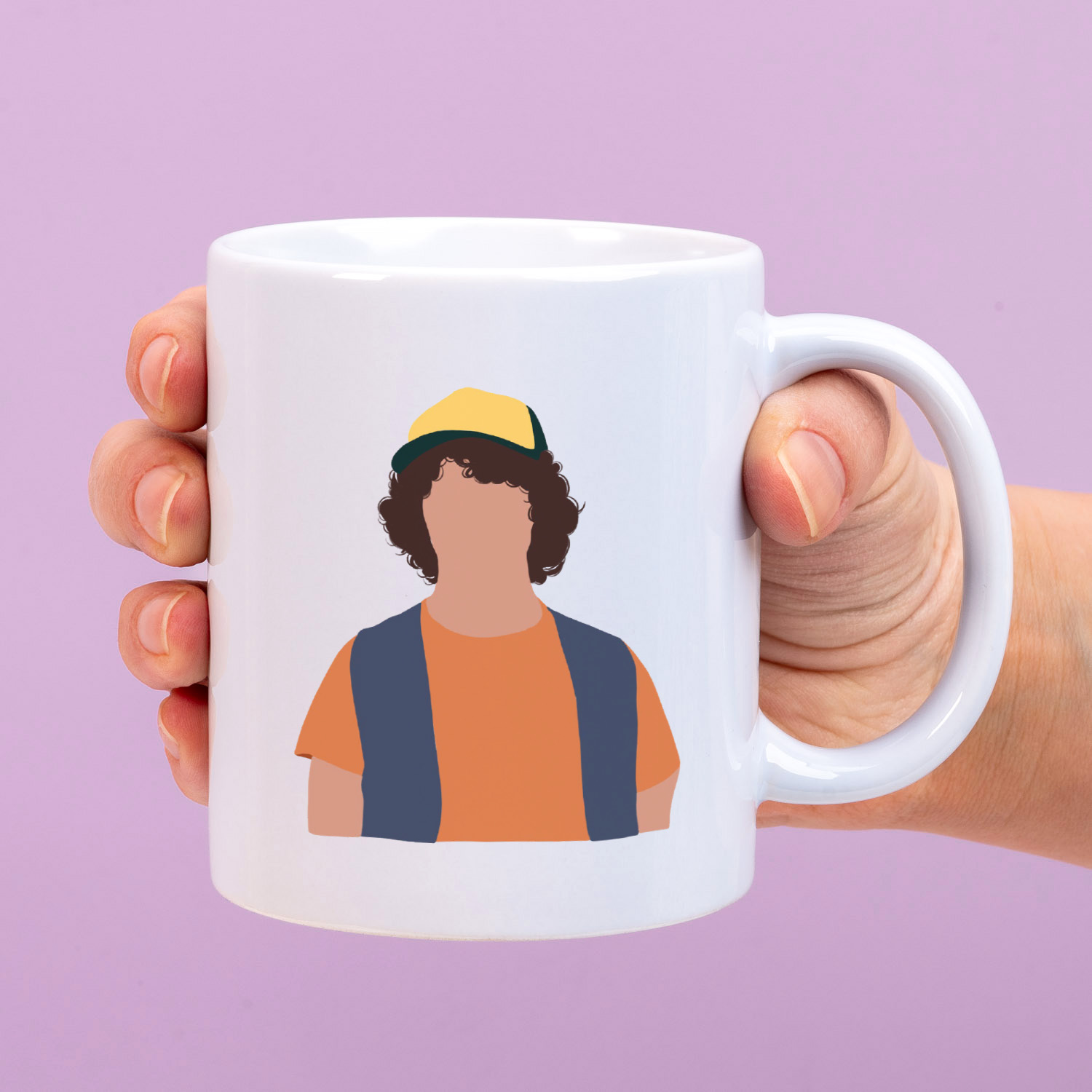 Pet op, krullen los, mond open. Dustin is de absolute held van Hawkins en dat weet hij zelf ook. De Mok Stranger Things Dustin is voor fans van de serie die voor Dustin zouden rennen als het moest, maar liever rustig koffie drinken.
