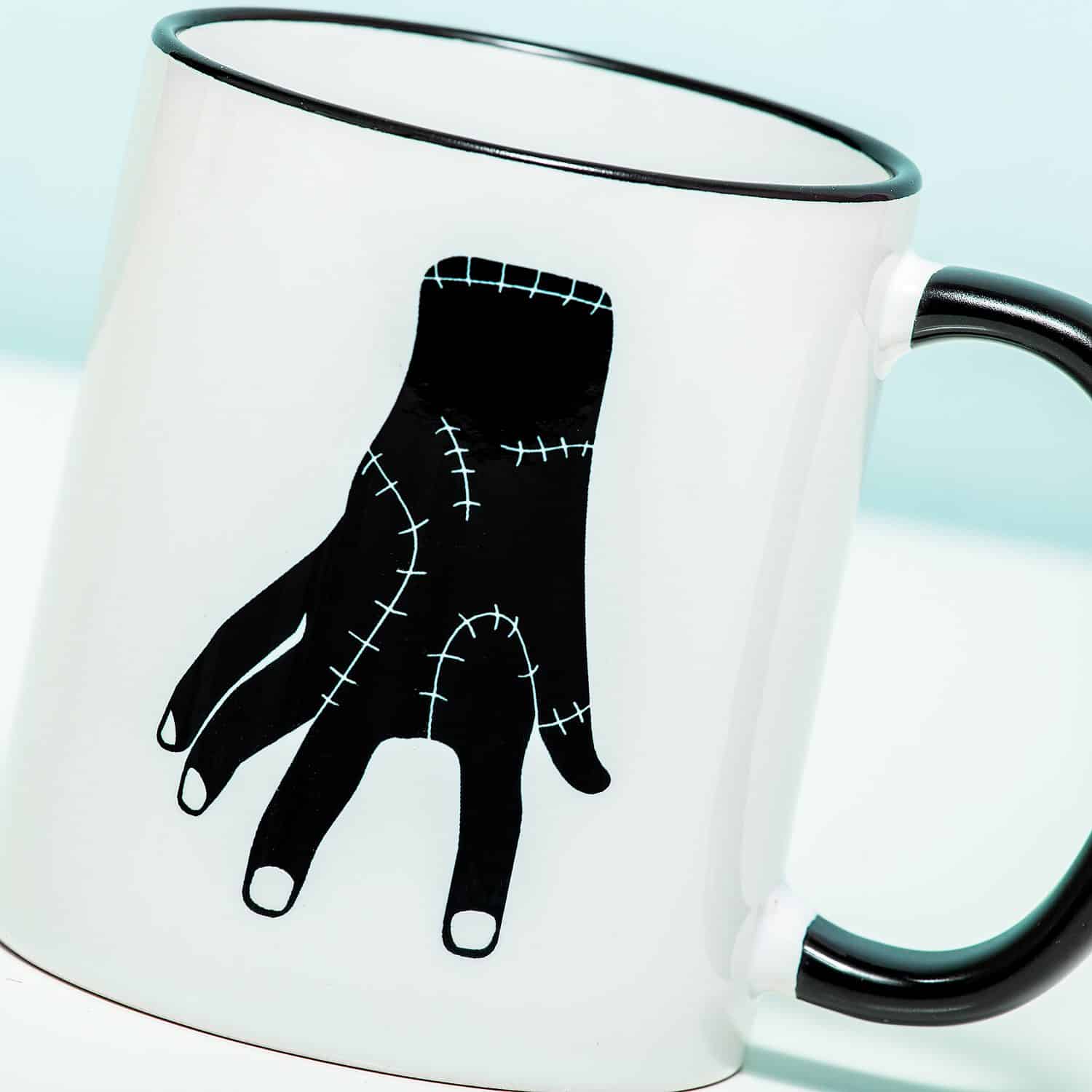 Altijd bereid om een handje te helpen: dat is Thing in the Addams family. De Mok Thing Wednesday is er speciaal voor de Netflix-serie Wednesday. Op deze beker zie je een illustratie van Thing zoals hij eruit ziet in de show. Een origineel cadeautje voor fans van de hitserie.