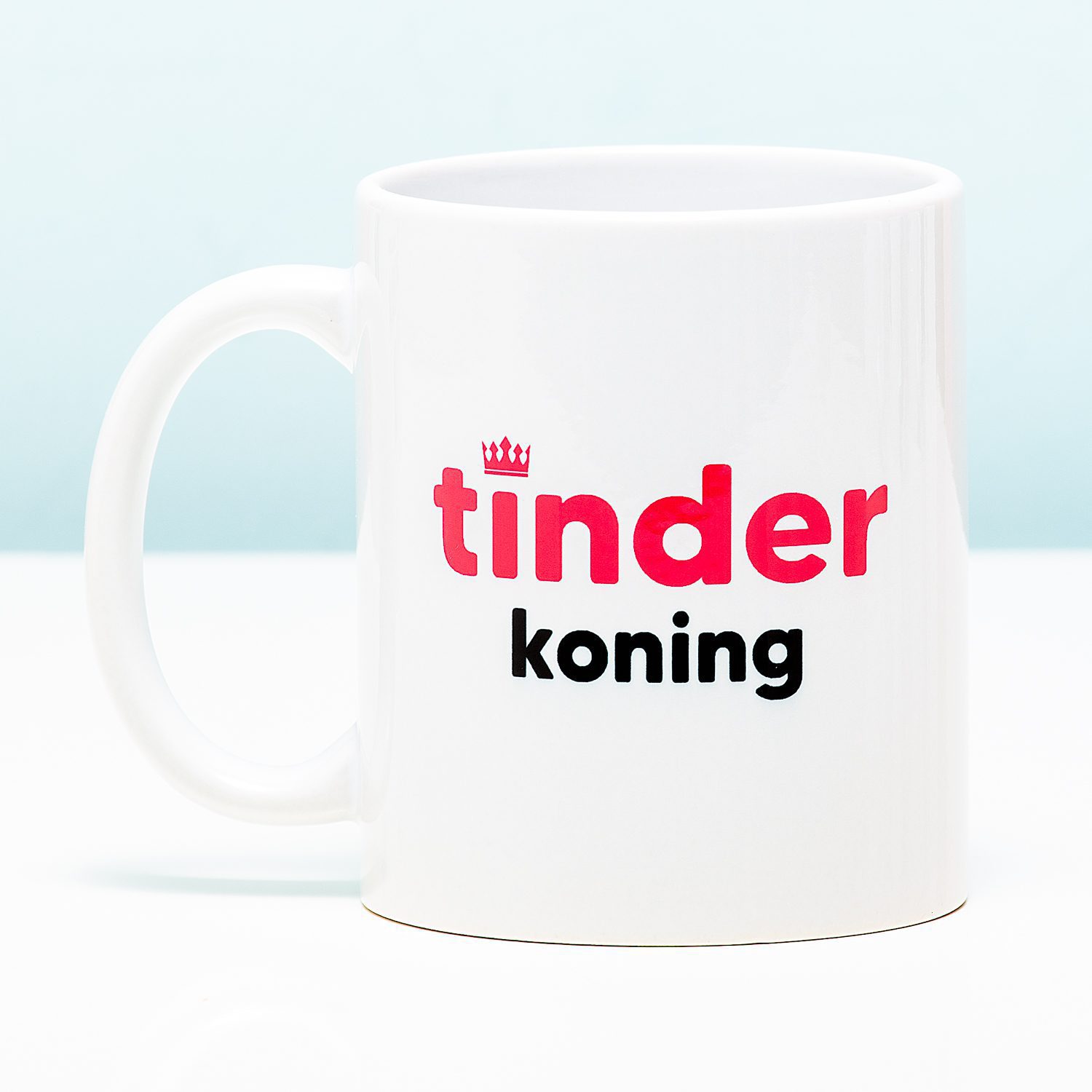 Breng jij hele dagen op Tinder door? Is jouw ultieme droom om de koning van de datingapp te worden? Start je dag goed met de Mok Tinder. Deze koffiebeker is voorzien van de tekst Tinder Koning. Perfect om je mee voor te bereiden op weer een dag swipen. Ook grappig als cadeautje voor een eeuwige vrijgezel.