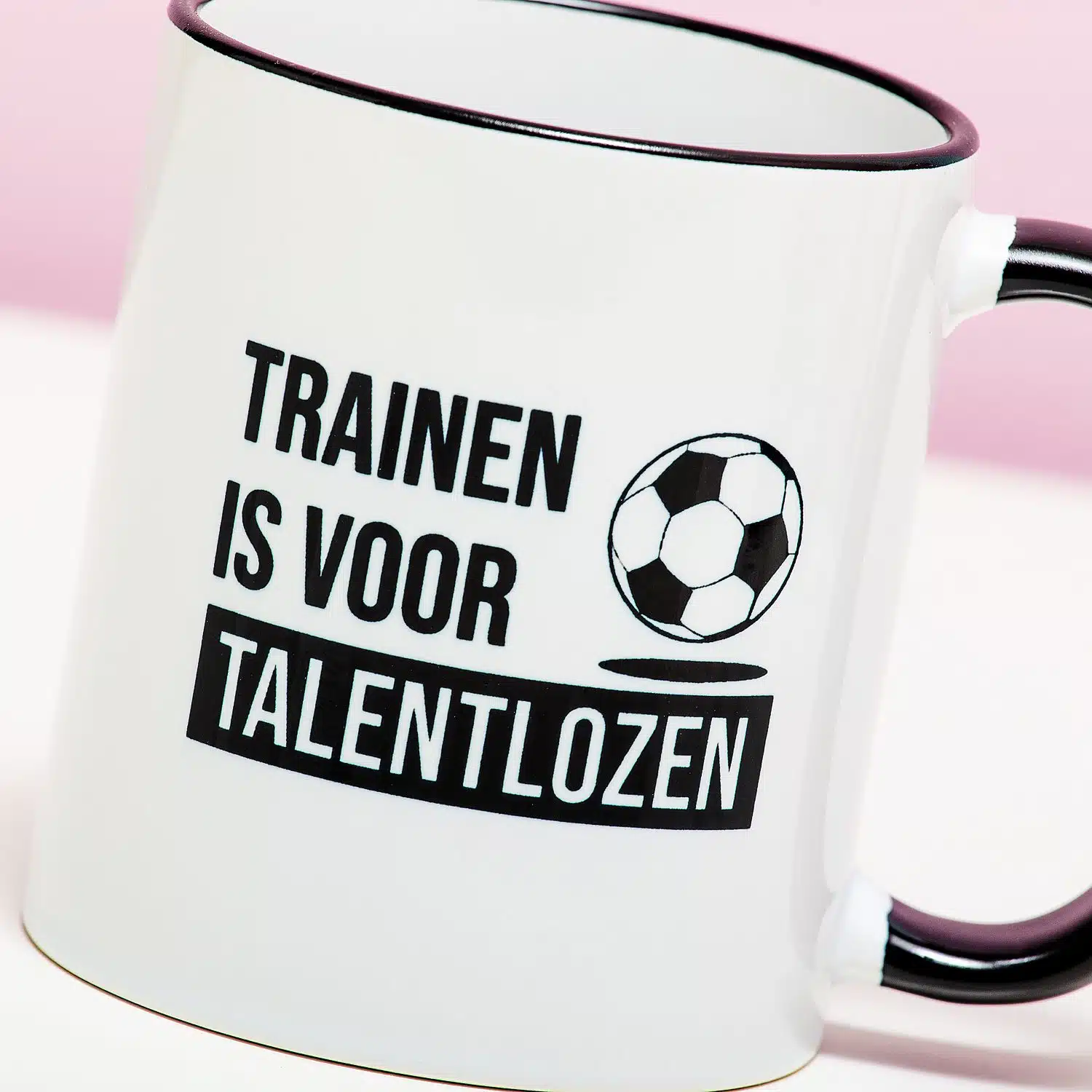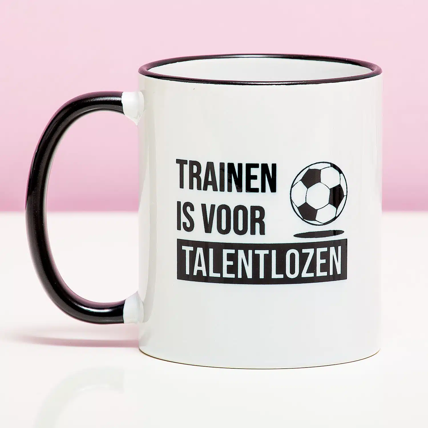 Van de F’jes tot het eerste team: de meeste voetballers nemen hun training heel serieus. En dus sta je regelmatig klappertandend je kind of geliefde aan te moedigen langs de rand van het veld. Met de Mok Trainen is voor talentlozen laat je op een sarcastische manier zien hoe je daar over denkt. Ook grappig om cadeau te geven aan je teammaatjes.