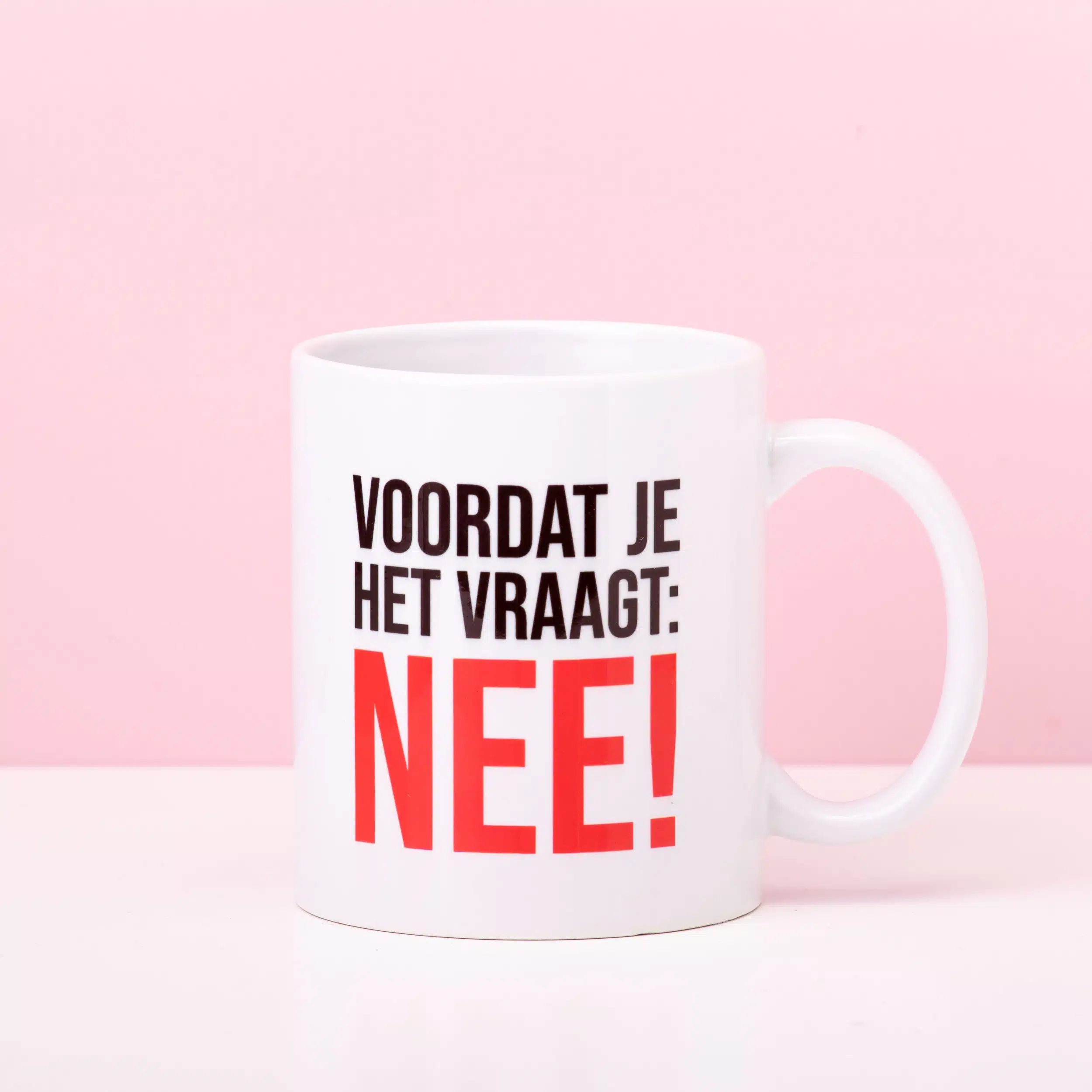 Je hebt mensen die anderen graag voor hun karretje spannen en mensen die het niet aandurven om nee te zeggen. Wordt jij altijd met rotklusjes opgezadeld op het werk? Neem dan de Mok Voordat je het vraagt mee naar het werk. Op de beker staat de tekst: Voordat je het vraagt: NEE! Duidelijk toch? Mocht je leidinggevende eraan komen, dan neem je snel een slok koffie uit deze assertieve mok. Wedden dat ze je voortaan met rust laten?