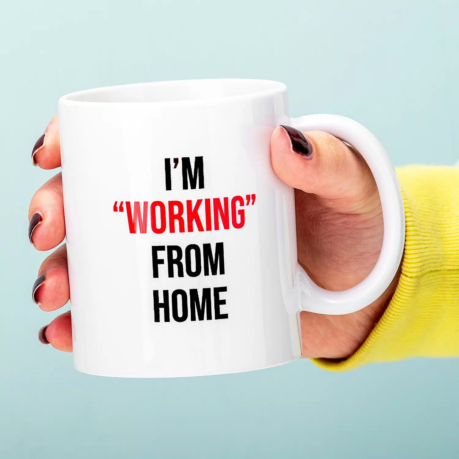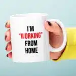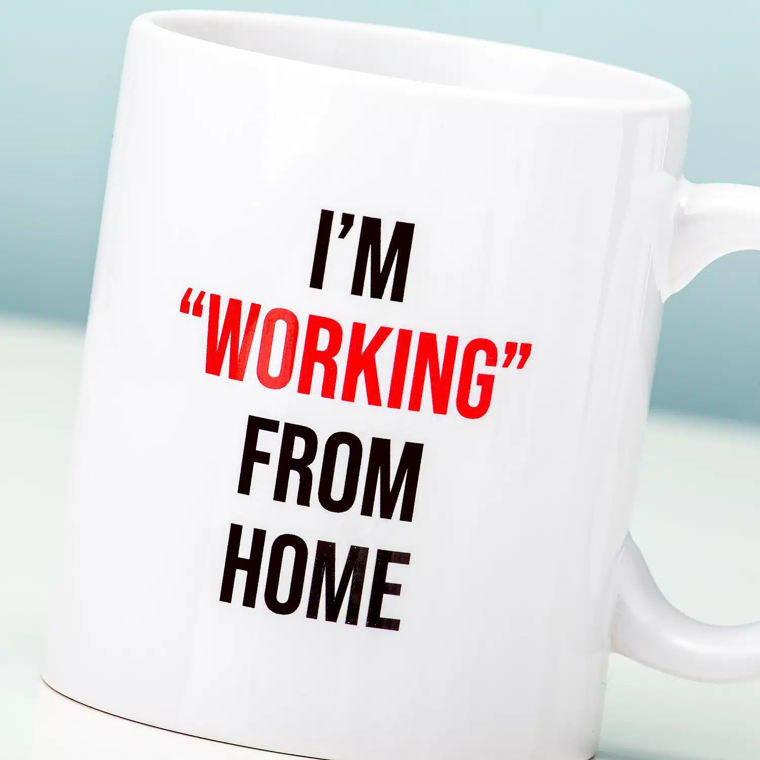 Heb je regelmatig Zoom-vergaderingen met je collega’s vanuit huis? Met de Mok “Working” From Home kun je hen laten zien dat je heus heel hard aan het werk bent. Op de witte beker staat de tekst I’m “working” from home. Een grappige en unieke mok, die het ook heel goed doet als cadeautje voor je collega. De mok kan oneindig vaak in de vaatwasser, zonder dat de print vervaagt.