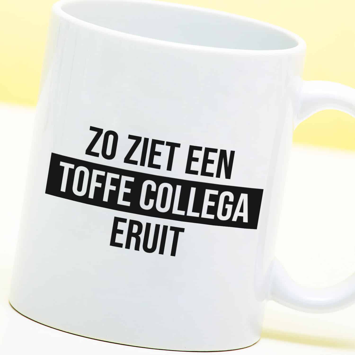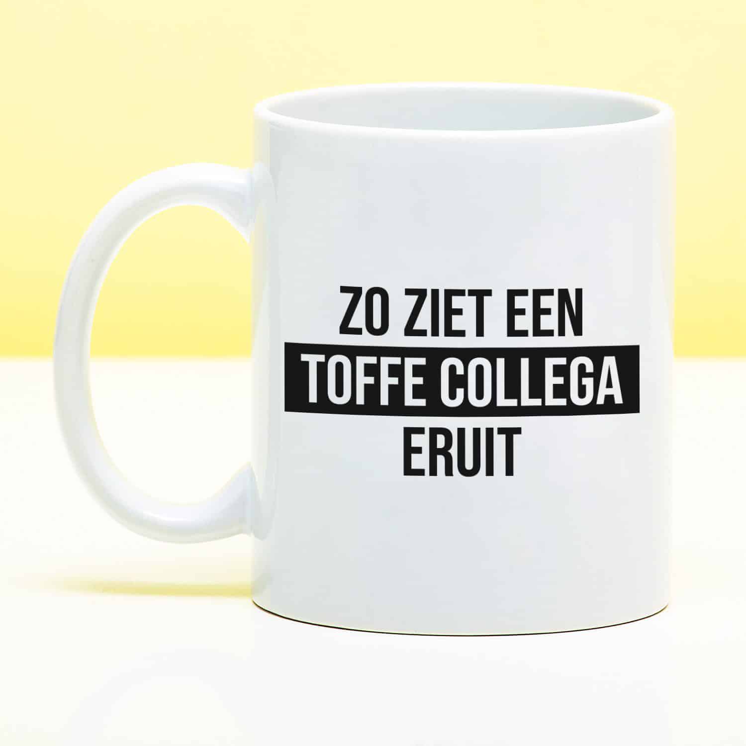 Jij hebt geweldige collega’s en zelf mag je er ook wel wezen! Daarom verras je je werkbestie met een lief cadeautje: de Mok Zo ziet een toffe collega eruit. Deze originele beker is bedrukt met de tekst: Zo ziet een toffe collega eruit. Elke keer als ze koffie of thee uit haar nieuwe beker drinkt, zal ze even aan je denken. En weet iedereen direct dat ze jouw favoriete collega is.