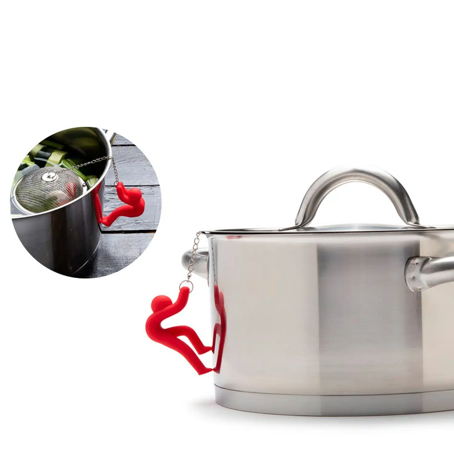 • Het poppetje voorkomt dat de kruideninfuser in de pan valt