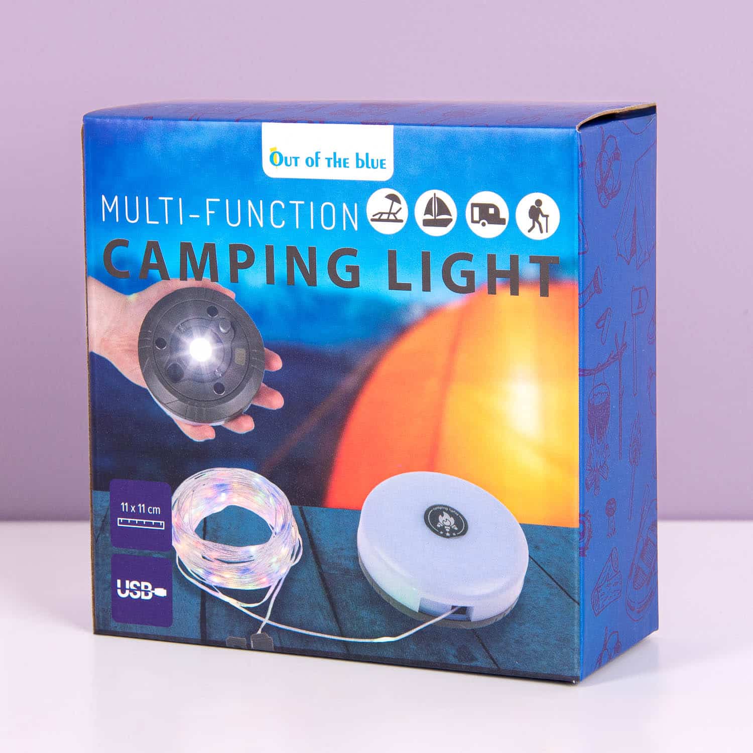 Met deze Multifunctionele USB kampeerlamp geef je je tent of camper net wat meer sfeer. De lamp combineert praktisch met sfeervol. Hij kan warmwit licht geven, maar er zit ook een lichtsnoer met gekleurde lampjes verstopt in de lamp. Super gezellig om je tent mee te versieren op een festival! De lamp heeft ook een powerbankfunctie, magneten aan de achterkant en een haakje om hem op te hangen.