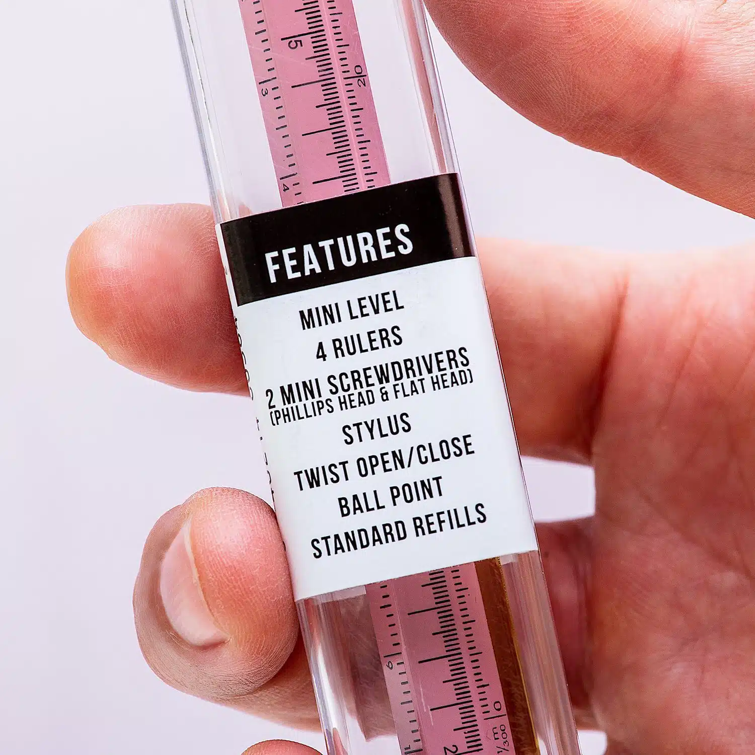 Even snel iets opmeten, een handtekening zetten op je telefoon of kijken of dat fotolijstje waterpas hangt: met de Multitool pen van Designworks Ink kan het allemaal. Deze stijlvolle balpen heeft allerlei handige functies. Zo heeft hij twee schroevendraaiers, een stylus en een waterpas. Een pen om altijd bij je te hebben dus.