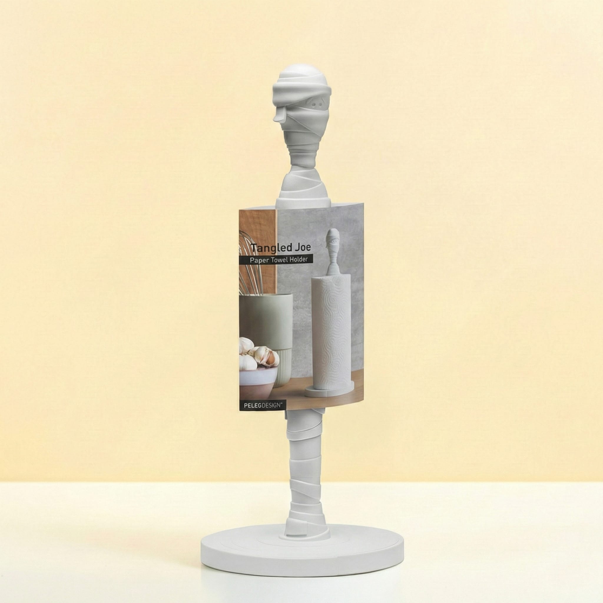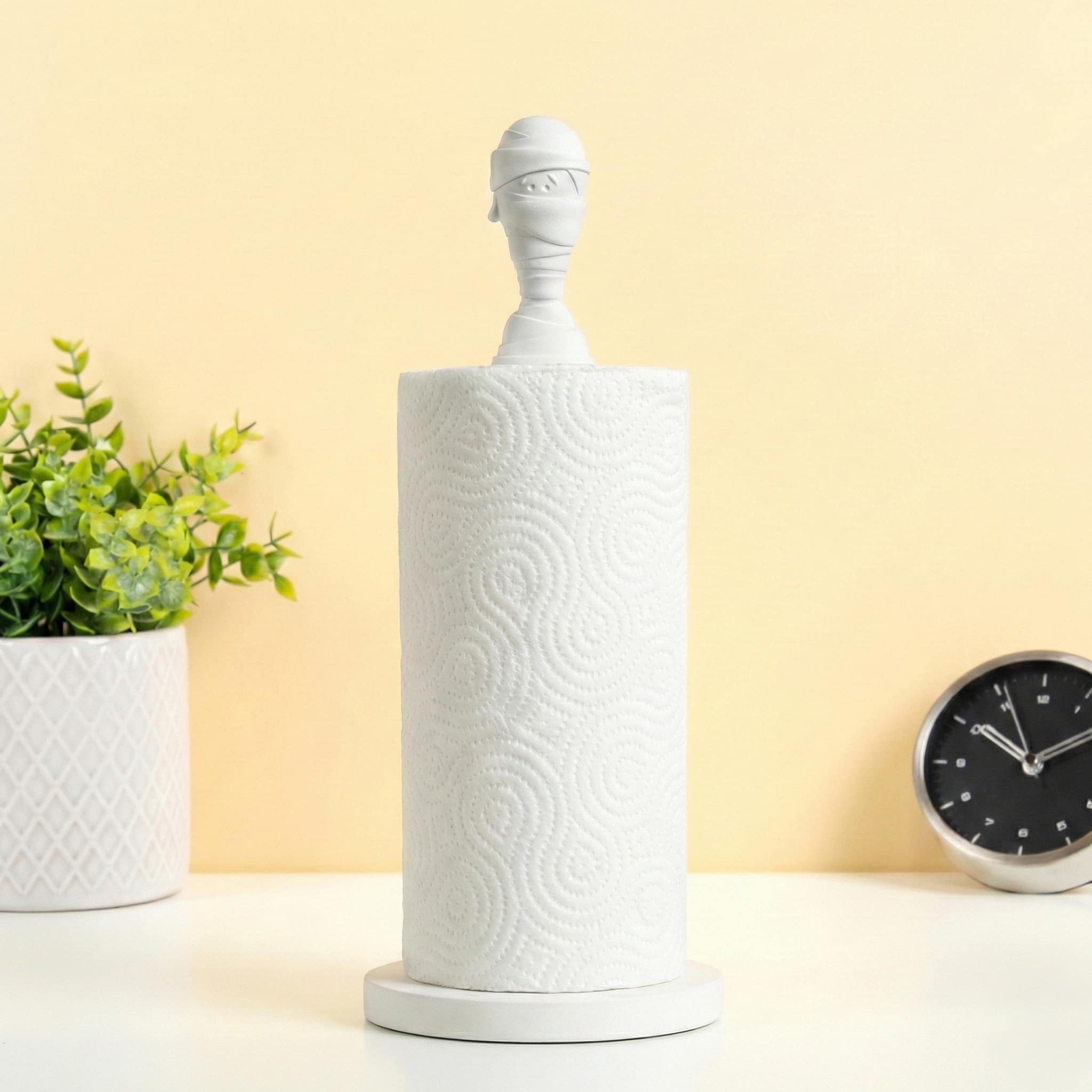 Maak kennis met de Mummie keukenrolhouder van Peleg Design: de keukenrolhouder met een ingepakt mummiehoofd bovenop! Elke keer dat je een velletje afscheurt, wikkel je de mummie verder af. Perfect voor Halloween… of eigenlijk het hele jaar door als je van spooky vibes houdt. Een grappig cadeau voor mensen die hun keuken wat griezeliger willen maken!