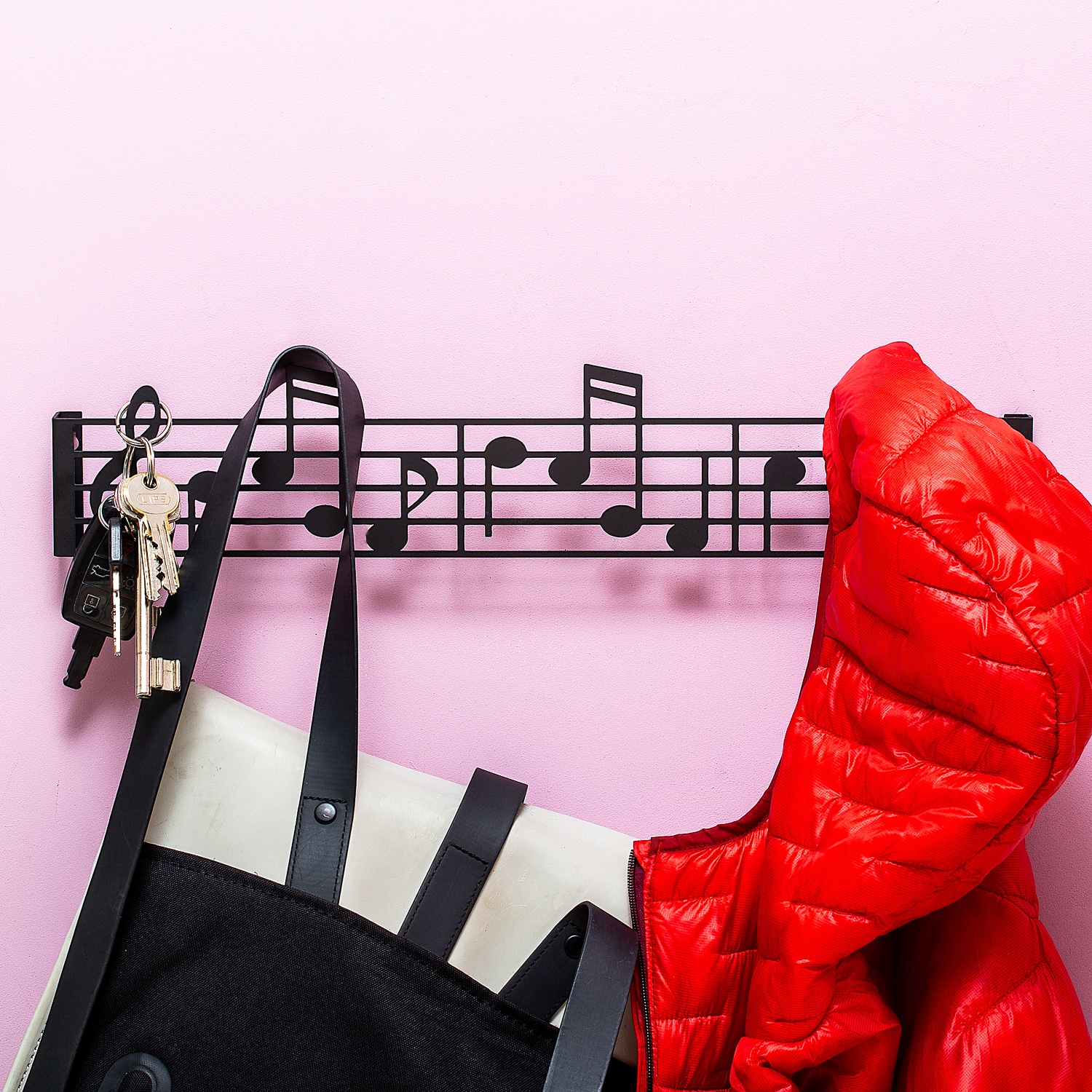 Mooie kapstok voor muziekliefhebbers, voorzien van muzieknoten. De kapstok is gemaakt van ijzer en heeft een zwarte kleur. Hang je sleutels direct op na thuiskomst, dan raak je ze nooit meer kwijt.
