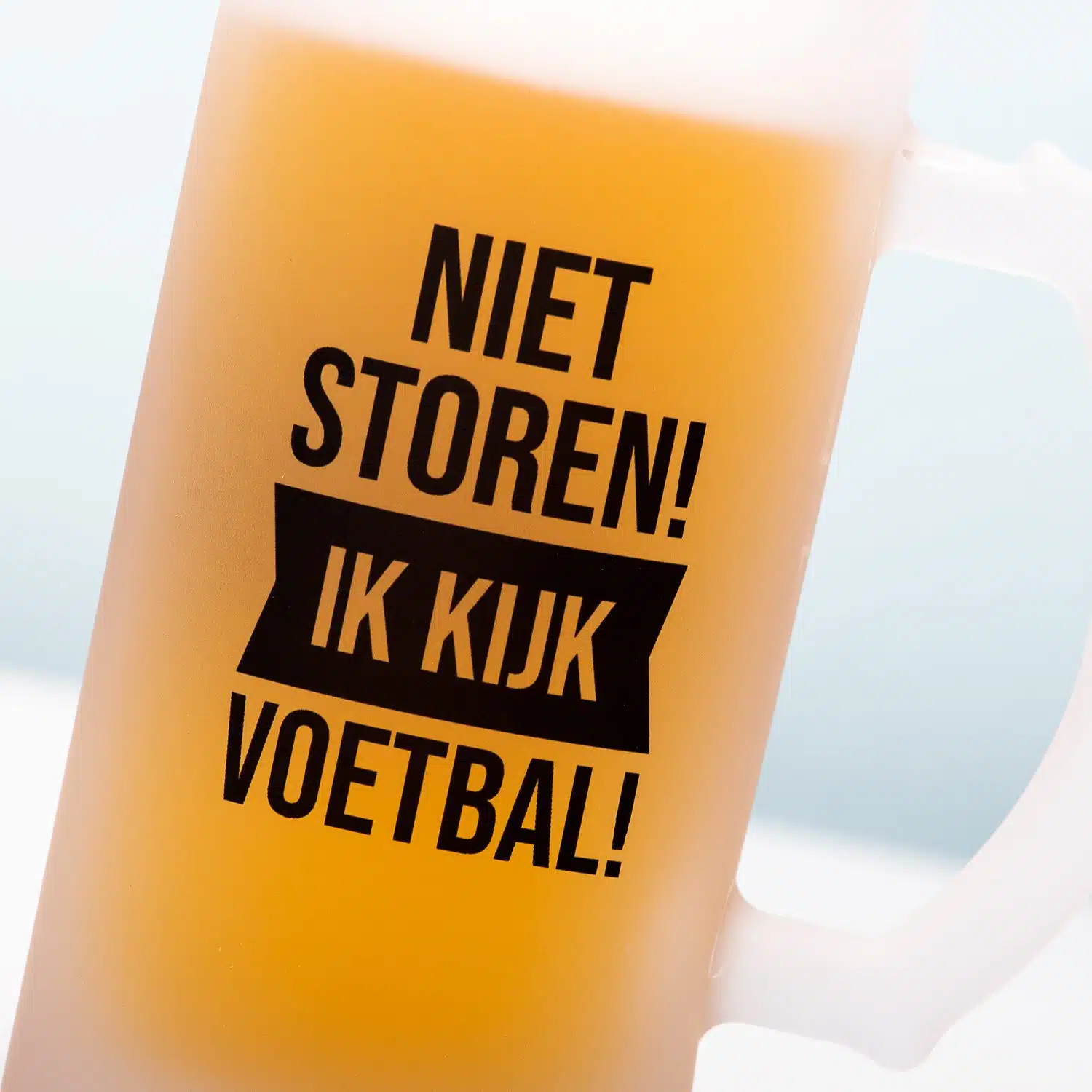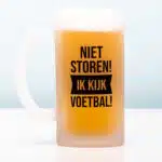 Tijdens het EK of andere voetbalwedstrijden weet je het wel: pa, vriendin of broer is weer onbereikbaar. Deze Niet storen, ik kijk voetbal bierpul springt hier leuk op in. Op dit grote bierglas staat de tekst: Niet storen! Ik kijk voetbal! Het is het perfecte cadeautje voor iedereen die graag voetbal kijkt, zonder ondertussen gestoord te worden door kinderen, partners en andere vervelende afleidingen.