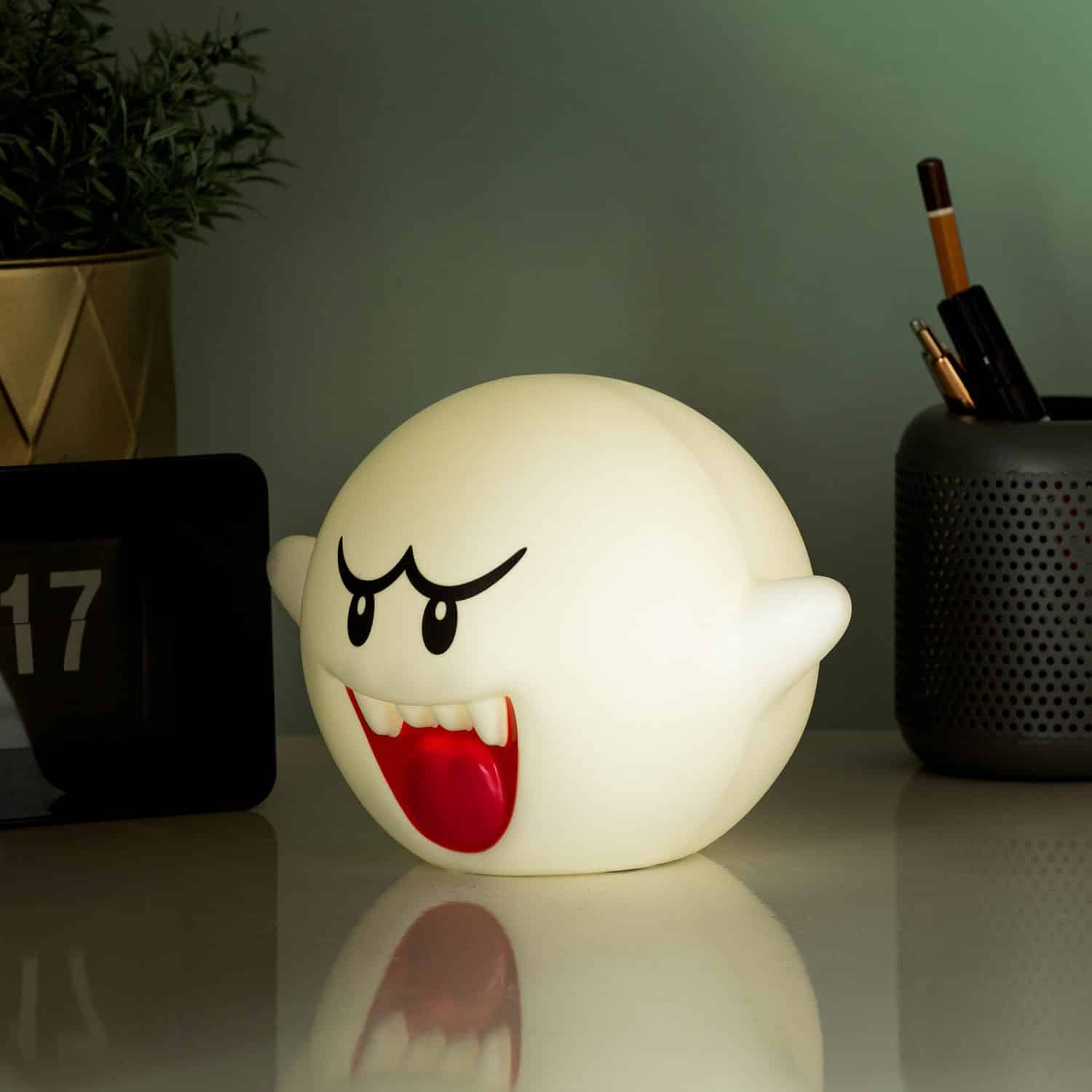 De Super Mario Boo lamp van Nintendo ziet er misschien angstaanjagend uit, maar hij is heus niet eng. Toch? Laat zien dat jij lef hebt en zet dit grappige lampje in de vorm van Boo uit de Super Mario games op je nachtkastje. Het spooklampje is perfect voor op het bureau of nachtkastje van gamers, maar is ook grappig in de kinderkamer. Zo houdt het spookje je kindje veilig. Wie had dat nou verwacht?