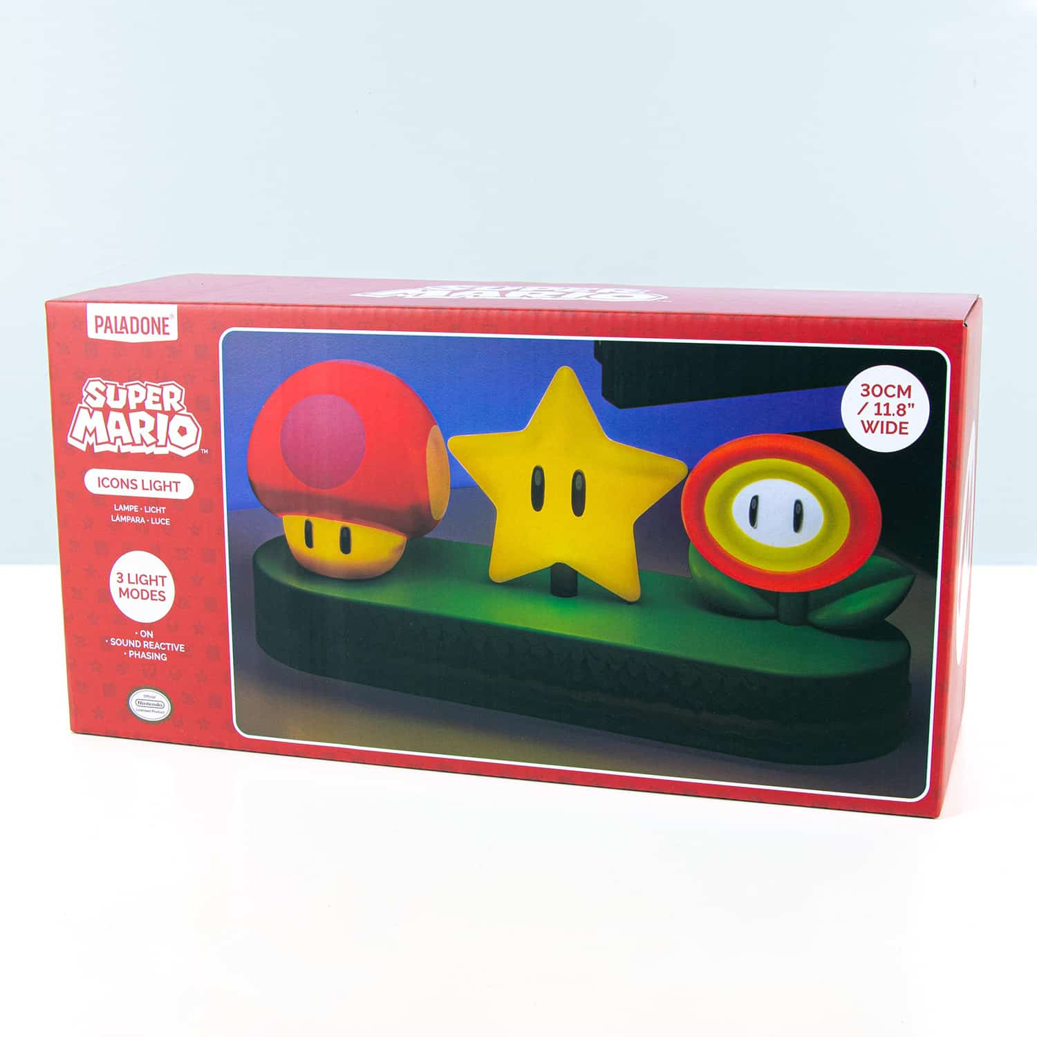 Dol op gamen of gewoon nostalgie naar je jeugd? De Super Mario Bros Icons lamp van Nintendo is er voor iedereen! Deze vrolijke lamp bevat allerlei belangrijke iconen die je kent uit Super Mario Bros, zoals een Super Mushroom, een Fire Flower en een Super Star. De lamp heeft drie lichtstanden en kan op muziek reageren.