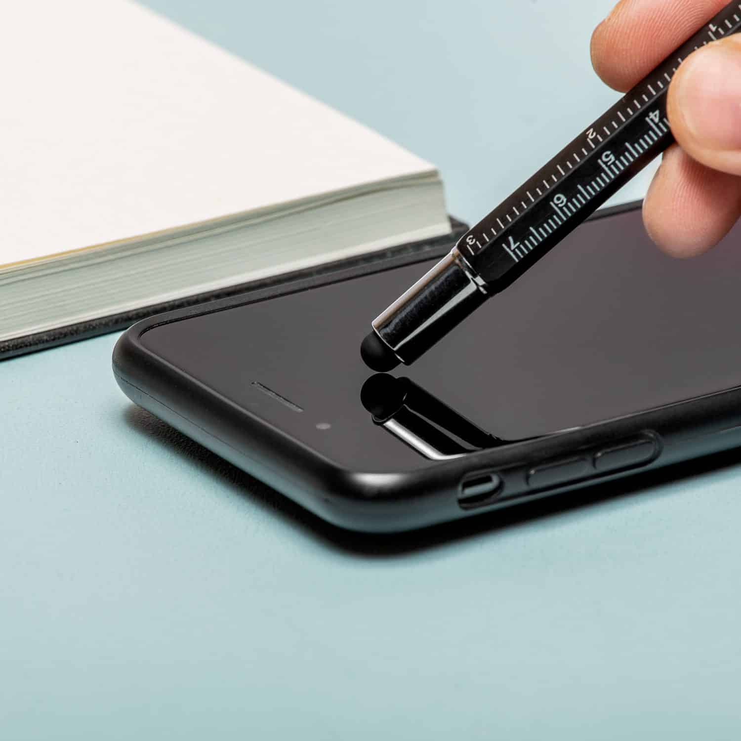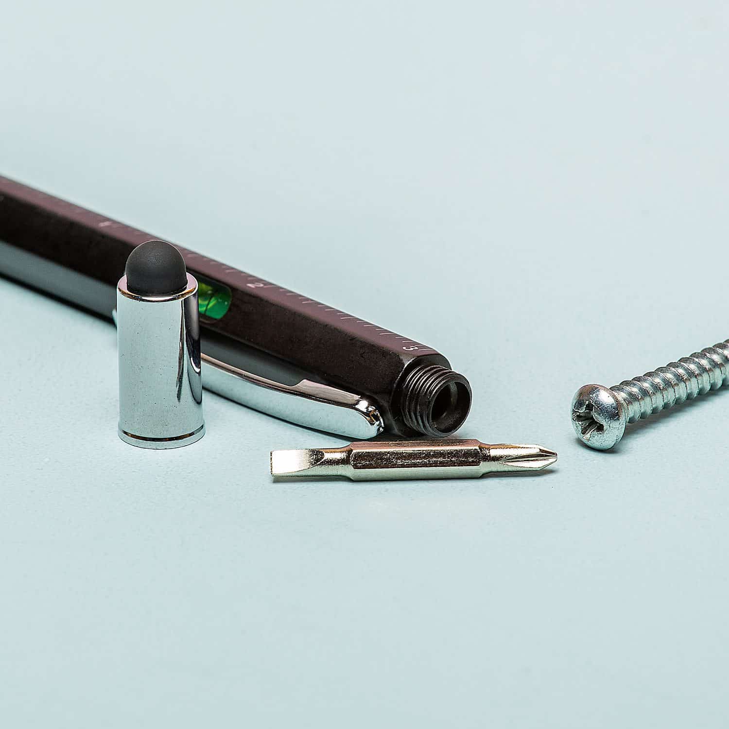 Een pen is altijd praktisch om in je tas of borstzakje te hebben. En met de 6-in-1 Multitool pen ben je altijd voorbereid op het onverwachte. Zit er een schroefje los? Met deze pen heb je dat zo weer aangedraaid. Wil je controleren of je iets recht hebt opgehangen? Gebruik dan de waterpas die in de pen zit. Naast een platte- en kruiskopschroevendraaier en waterpas bevat de pen ook een stylus en liniaal. En je kunt natuurlijk ook gewoon met de multitool pen schrijven! De schroevendraaiers vind je als je de achterkant van de pen verwijderd.
