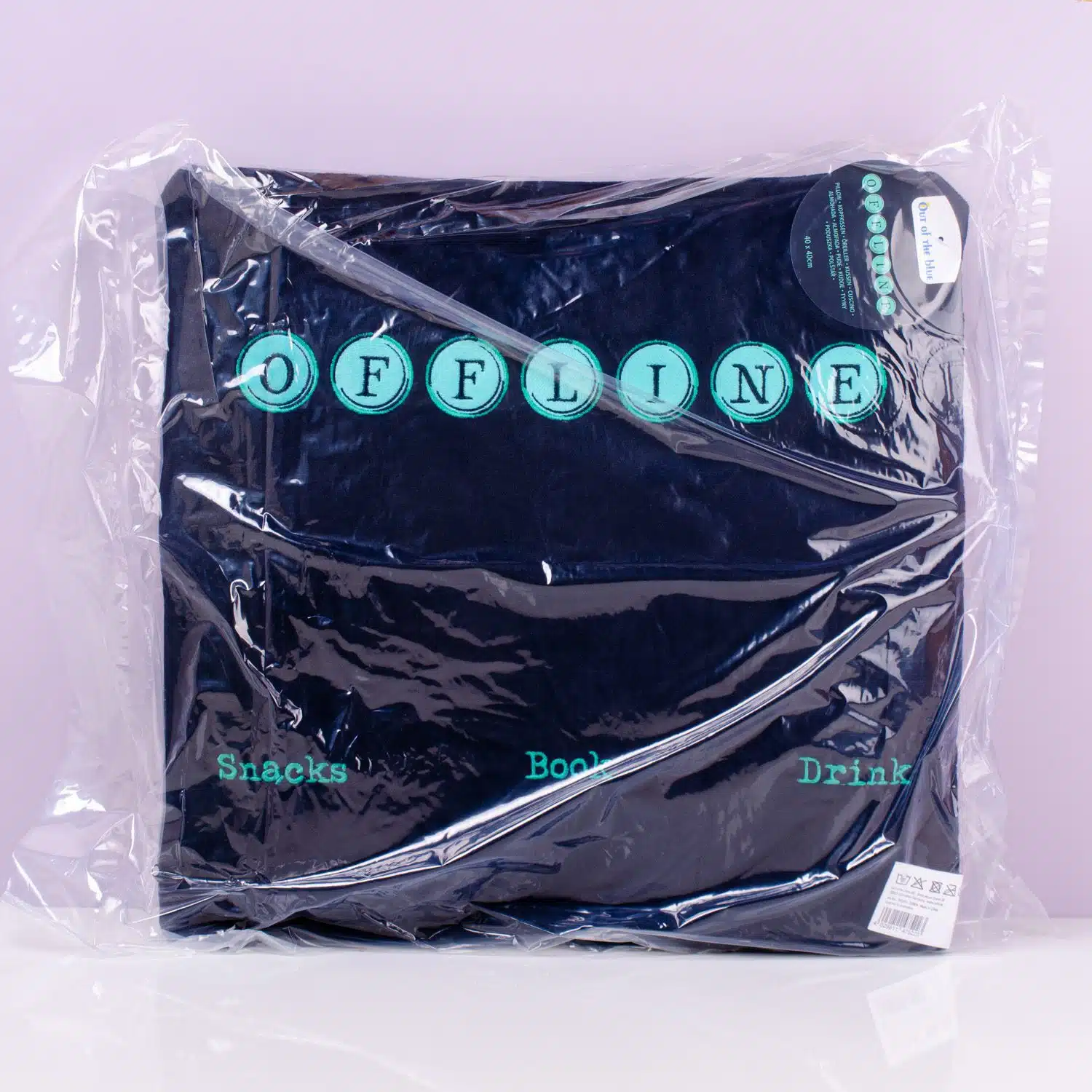 Gooi je telefoon aan de kant en ga even lekker helemaal offline met het Offline kussen met zakken van Out of the Blue. Met dit grappige kussen heb je alles bij de hand voor een avondje zonder schermen. Het kussen heeft drie zakken: voor snacks, een boek en een flesje drinken. Wie heeft er een scherm nodig, als je dit hebt?