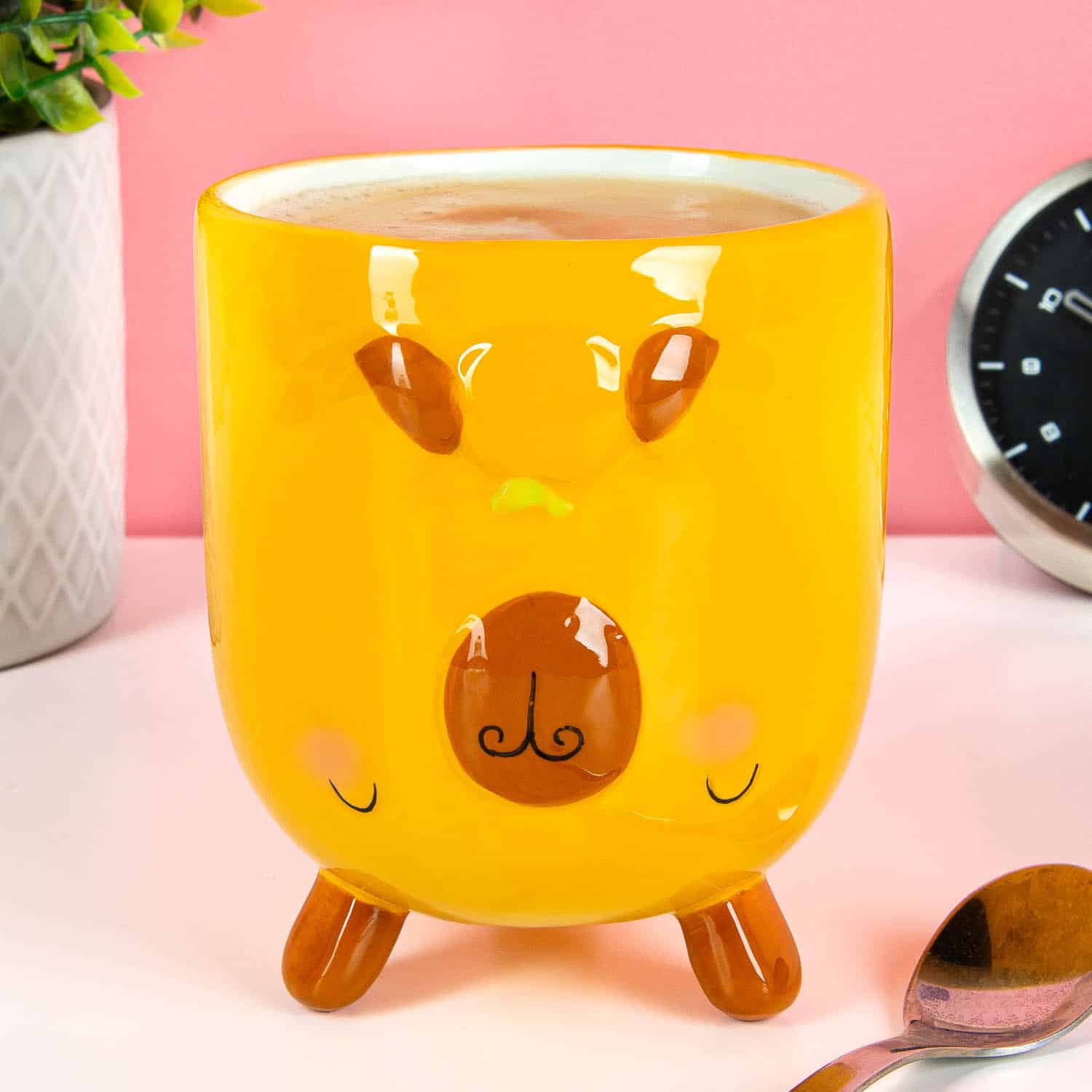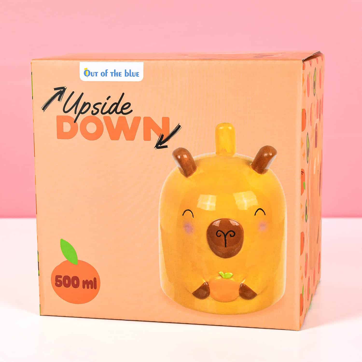 De Ondersteboven capibara mok is er voor iedereen die zijn dag net zo relaxed wil starten als het meest ontspannen dier ter wereld. Deze bijzondere mok staat op zijn kop en rust op de oren en staart van een capibara. Perfect voor langzame ochtenden, eindeloze werkdagen of gewoon als je lekker aan het niksen bent. Eén slok en je voelt je meteen minder schuldig over die to-do lijst.