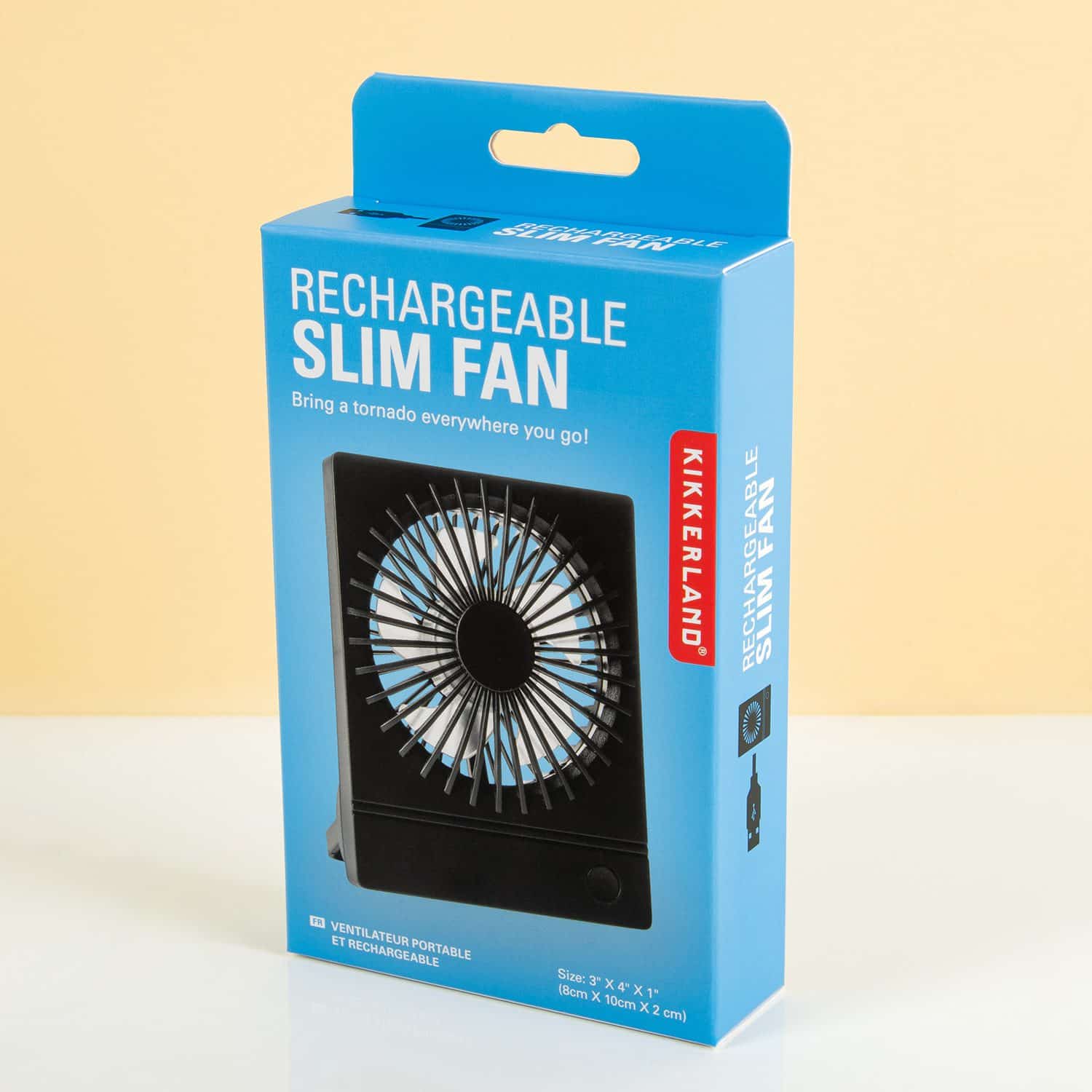 Is je werkplek te warm om je te kunnen concentreren? De Oplaadbare bureauventilator van Kikkerland geeft verkoeling. Met zijn drie verschillende snelheden houdt deze mini-tornado je gedurende maximaal zes uur heerlijk koel. Deze compacte ventilator past zelfs op het kleinste bureau: hij is nog geen tien centimeter breed.