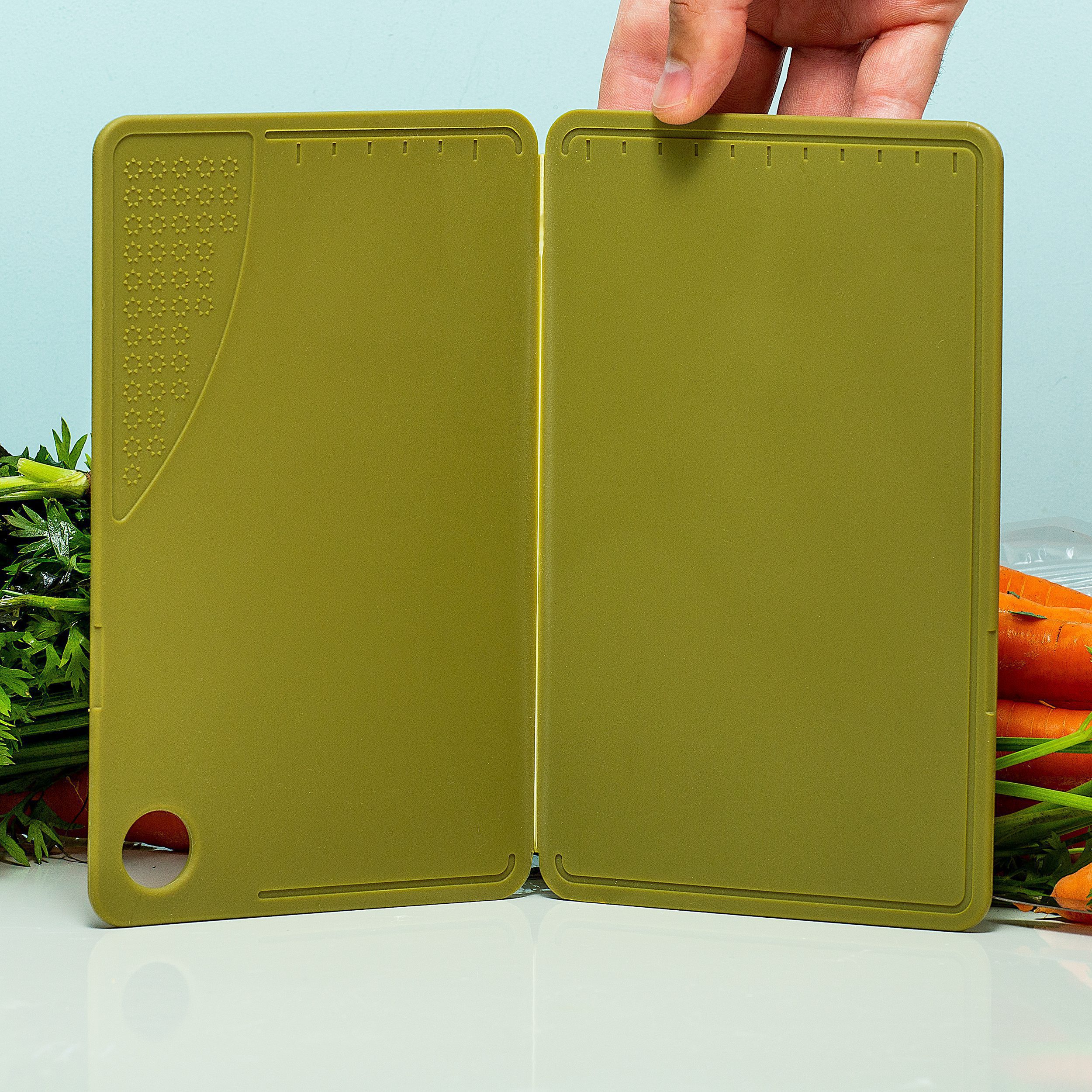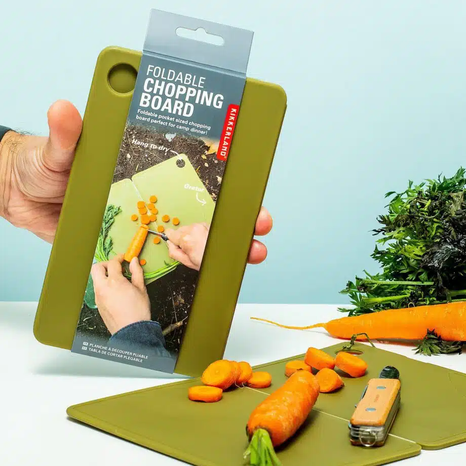 Klein, licht en makkelijk mee te nemen: vrijwel alles wat je meeneemt op een kampeertrip moet aan die voorwaarden voldoen. En de Opvouwbare snijplank van Kikkerland voldoet hier perfect aan. Deze handige snijplank is perfect voor mensen die klein wonen, graag gaan kamperen of graag in de buitenlucht koken. Zijn de groenten klaar om in de pan gegooid te worden? Dit wordt extra makkelijker als je de snijplank dubbelvouwt.