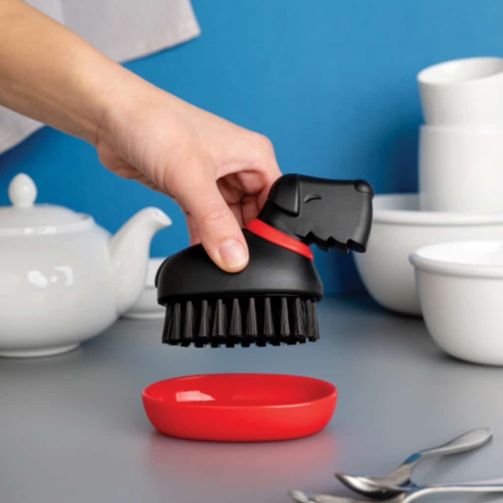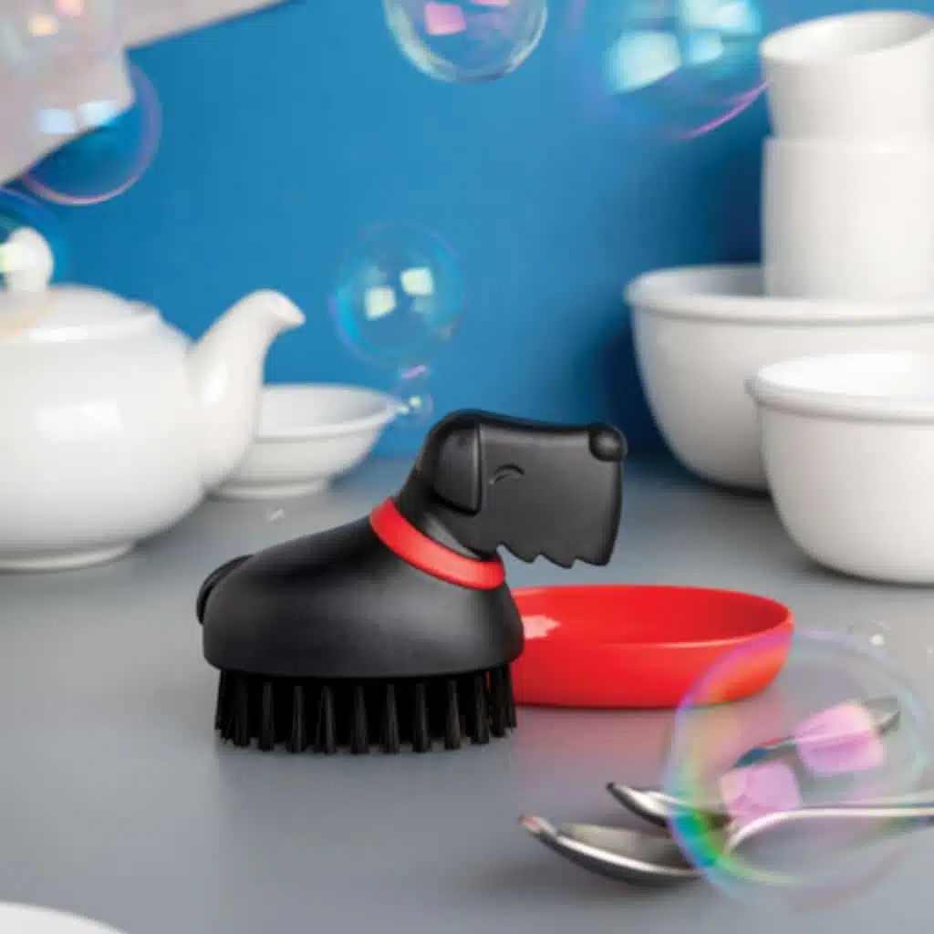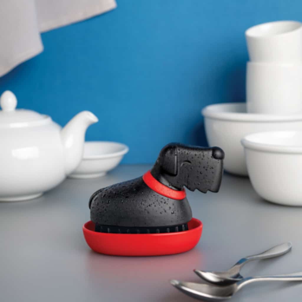 Maak afwassen leuker met Oscar! Deze trouwe viervoeter-afwasborstel blaft niet, vraagt geen aandacht én helpt je met de afwas. Hij komt met een klein afdruiprekje dat eruit ziet als zijn mand, zodat hij na gedane arbeid keurig kan uitrusten. Een schattige manier om je afwasborstel op te bergen en je aanrecht netjes te houden. Een leuk cadeau voor hondenliefhebbers!