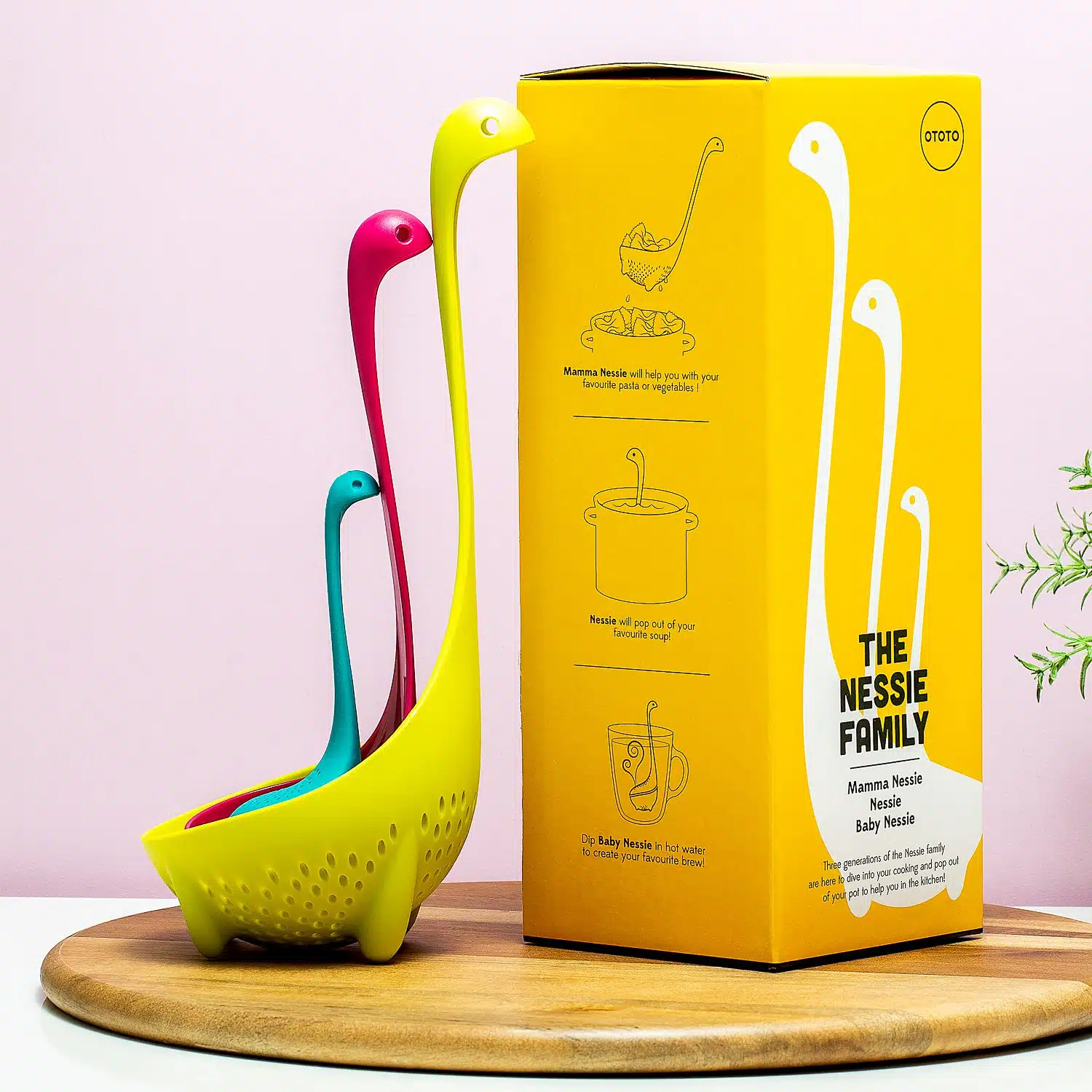 • Nessie familie bestaat uit vergietlepel, soeplepel en tea infuser