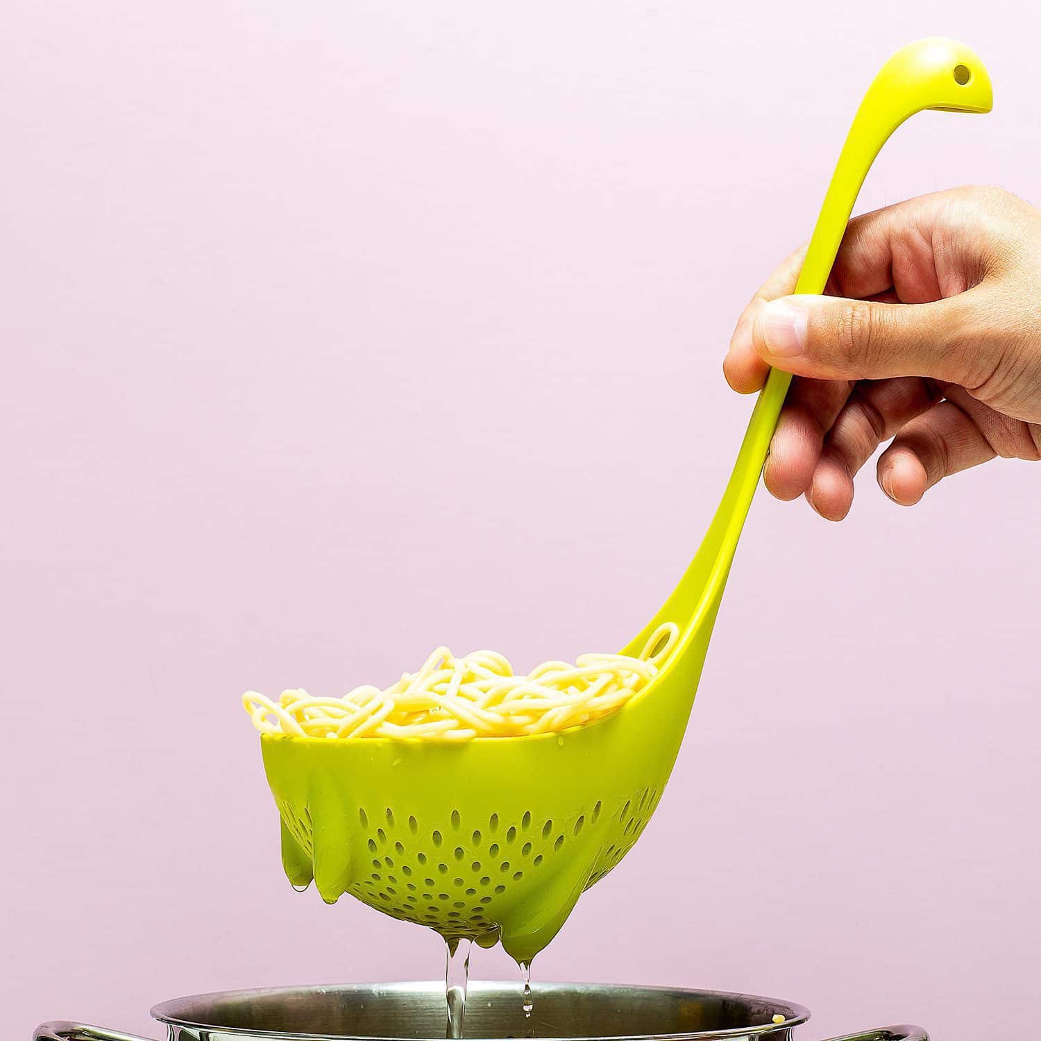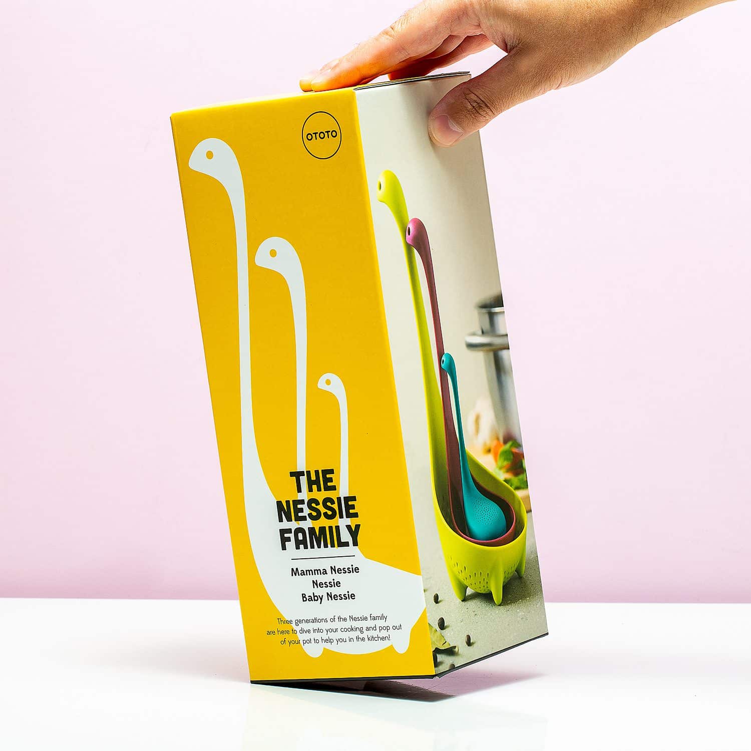 Ben je een groot fan van het Monster van Loch Ness? Met de Nessie familie (set van 3) van Ototo haal je het hele gezin in huis. Het Nessie gezin bestaat uit een vergietlepel, een soeplepel en een tea infuser. De groene Mamma Nessie gebruik je om pasta of groente af te gieten, met de rode Nessie schenk je soep in de kommen en in het buikje van de blauwe Baby Nessie doe je losse thee. De monsters zet je op de bodem van de pan of van je theeglas. Het lijkt net alsof ze vrolijk rondzwemmen.