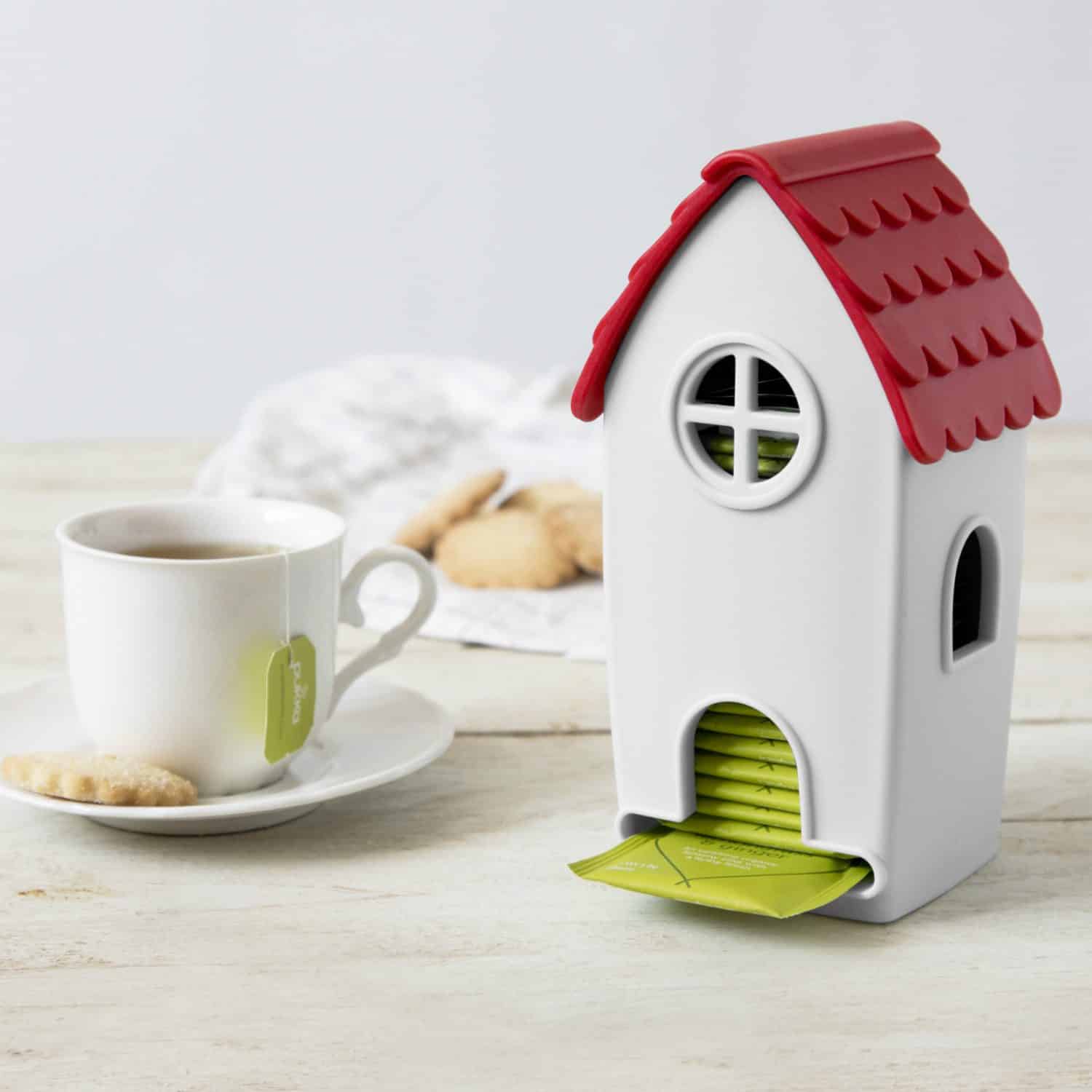 Bewaar jij je theezakjes gewoon in het doosje waarin je ze koopt in de supermarkt? Met het Theehuisje van Ototo is dat verleden tijd. Als jouw vriendinnen komen theeleuten, dan zet je ze geen saai doosje meer voor, maar dit theehuisje. Het huisje is een soort dispenser voor theezakjes. Je vult het aan de bovenkant door het dak eraf te halen en je haalt de zakjes er één voor één aan de onderkant uit.