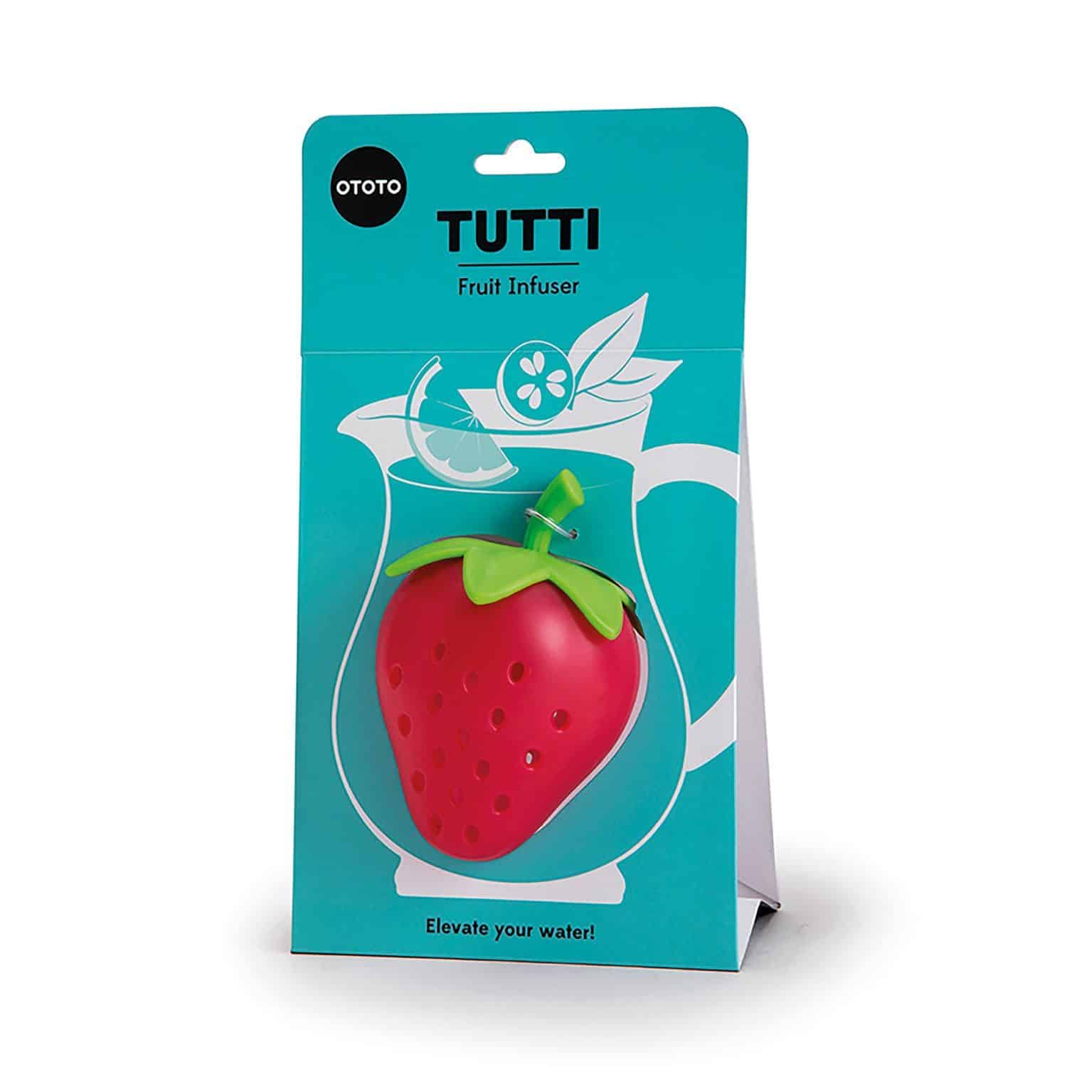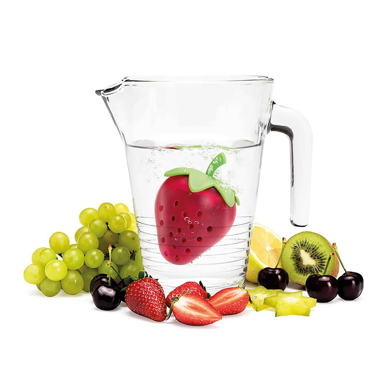 We weten het heus wel: water is heel gezond. Maar het is ook zó smakeloos. Met de Tutti fruitinfuser maak je water lekkerder! Je doet namelijk fruit in de fruitinfuser van Ototo en dat fruit geeft weer smaak af aan het water. De infuser heeft de vorm van een aardbei en is geschikt voor bijvoorbeeld munt, citroen, bessen en komkommer. Vul de siliconen infuser, laat het fruit een poosje trekken in het water en geniet van je heerlijke drankje. Perfect voor in de warme zomers, maar ook hartstikke lekker in de winter. De fruitinfuser heeft een diameter van 7 centimeter.