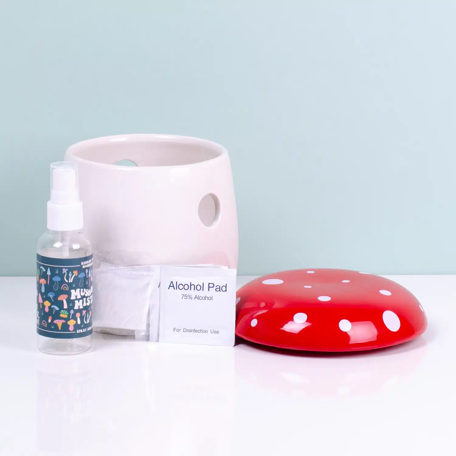 - Met keramische paddenstoel, bemister, antibacteriƫle doekjes en instructies