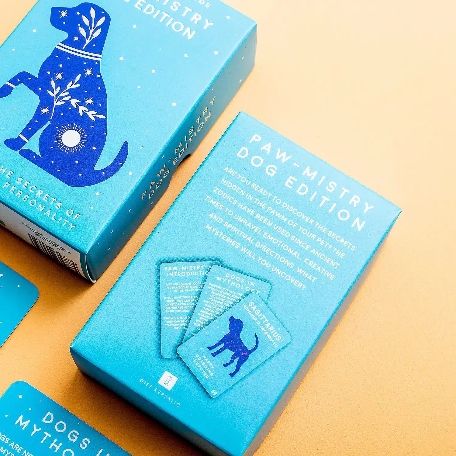 Wil jij graag beter begrijpen waarom je hond of kat doet wat ‘ie doet? Dat kan met de Paw-mistry kaarten van Gift Republic. Deze set van honderd kaarten helpt je om de persoonlijkheid van je huisdier te interpreteren. Waarom is hij zo angstig of juist ondernemend? Het staat in de sterren geschreven! De set bevat in totaal honderd kaarten geschreven in het Engels, verkrijgbaar voor honden of katten.