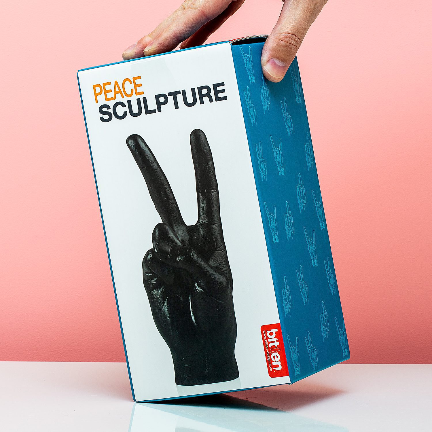 Voor oude hippies en trendy Insta-meisjes hebben we het Peace beeld van Bitten in ons assortiment opgenomen. Doe jij niks liever dan poseren voor foto’s terwijl je het peace-teken maakt? Dan is dit beeld onmisbaar in je huis. De opvallende hand is gemaakt van kunsthars en is voorzien van een zwart laagje. Hij is ongeveer even groot als een echte hand en zwaar genoeg om hem te gebruiken als presse papier. Of hang er je favoriete ringen en armbanden omheen! Als je niet van al te veel tierlantijntjes houdt, dan kun je het beeld natuurlijk ook gewoon als pronkstuk op een bijzettafeltje zetten.