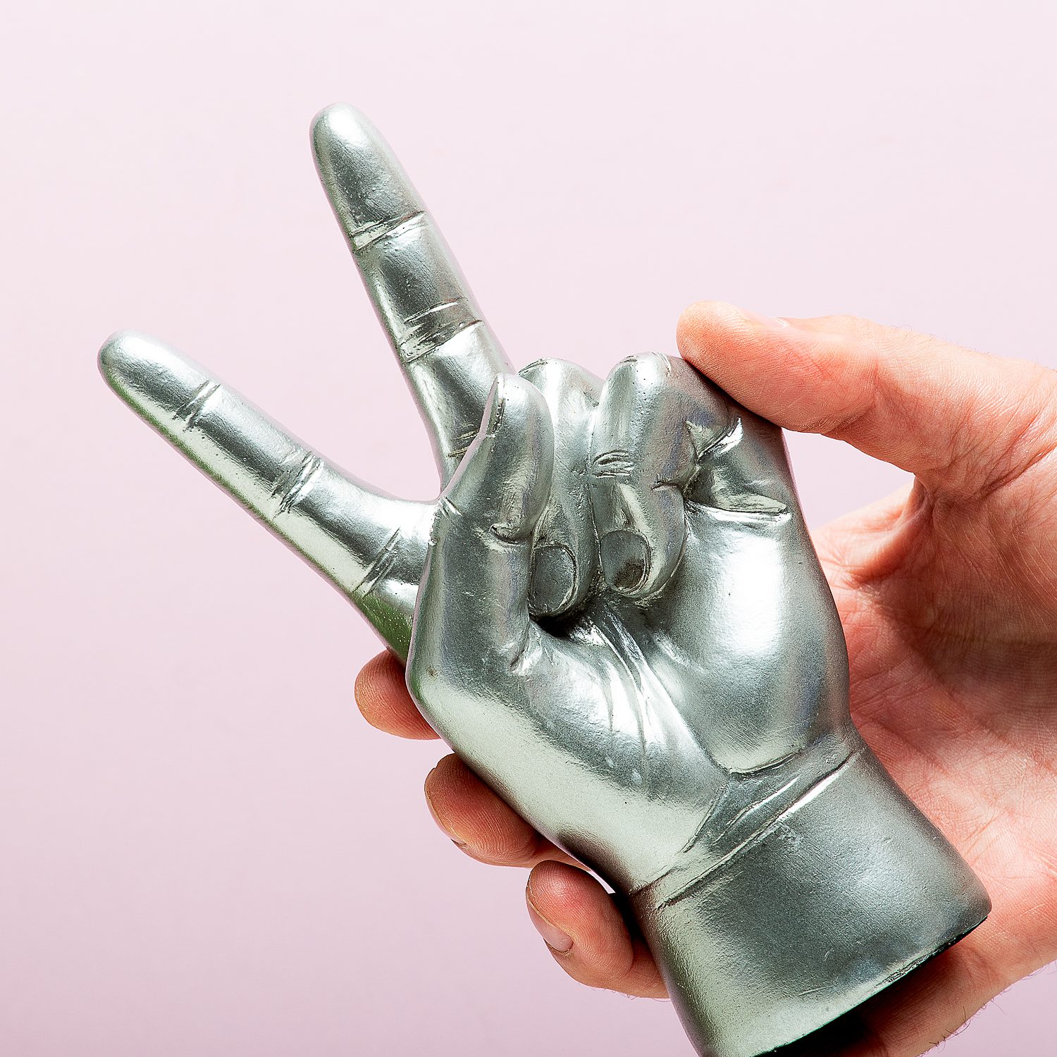 Een helpende hand: dat is de Peace Out sieradenhouder van Luckies. Deze multifunctionele hand is geschikt voor het opbergen van sieraden, oordopjes, horloges of elastiekjes. Of gebruik hem gewoon als stoer woonaccessoire!