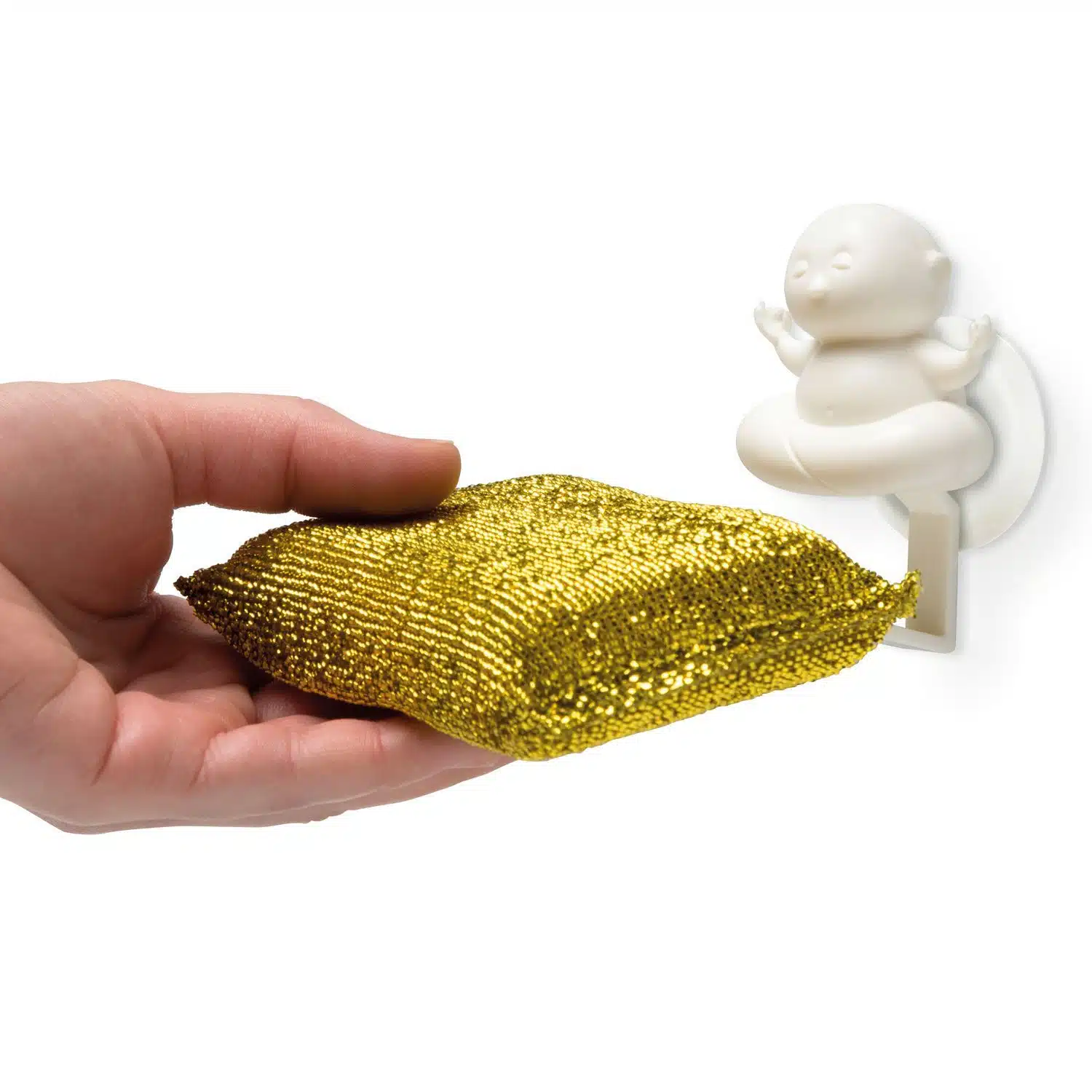 Tja, de afwas. Wat moeten we daarover zeggen? Fijn als het weer gedaan is, toch? Dan kun je jezelf belonen met een fijn uurtje relaxen. En die natte spons die je hebt gebruikt? Die hang je gewoon te drogen in de spoelbak of aan de keukenmuur. Op de Yogi sponshouder natuurlijk! Deze sponshouder van Peleg Design ziet eruit als een yogi op een goudkleurig kussentje, wat in werkelijkheid een gouden spons is. De houder zit met een zuignap vast aan je spoelbak en de spons schuif je onder de yogi. Zo hoef je de natte spons niet uit te laten lekker op het aanrecht. Handig én leuk.