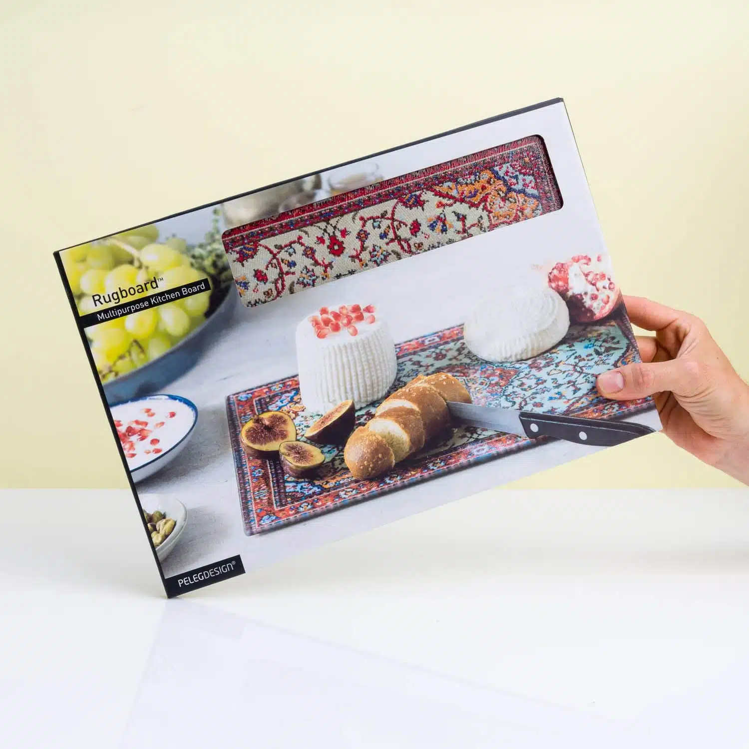 Snijplank, onderzetter, serveerbord: dit Perzisch tapijt is het allemaal! Stap op de magische Perzische tapijt snijplank van Peleg Design en ontdek waar je reis eindigt. Stop je in Frankrijk, waar je stokbroodjes en kaas op deze snijplank snijdt? Of beland je in Mexico, waar de pan chili con carne op het tapijt wordt gezet om je tafel te beschermen. Of je nu gaat borrelen met vrienden of even snel groenten moet snijden voor het avondeten, dit tapijt van glas is altijd klaar voor gebruik.