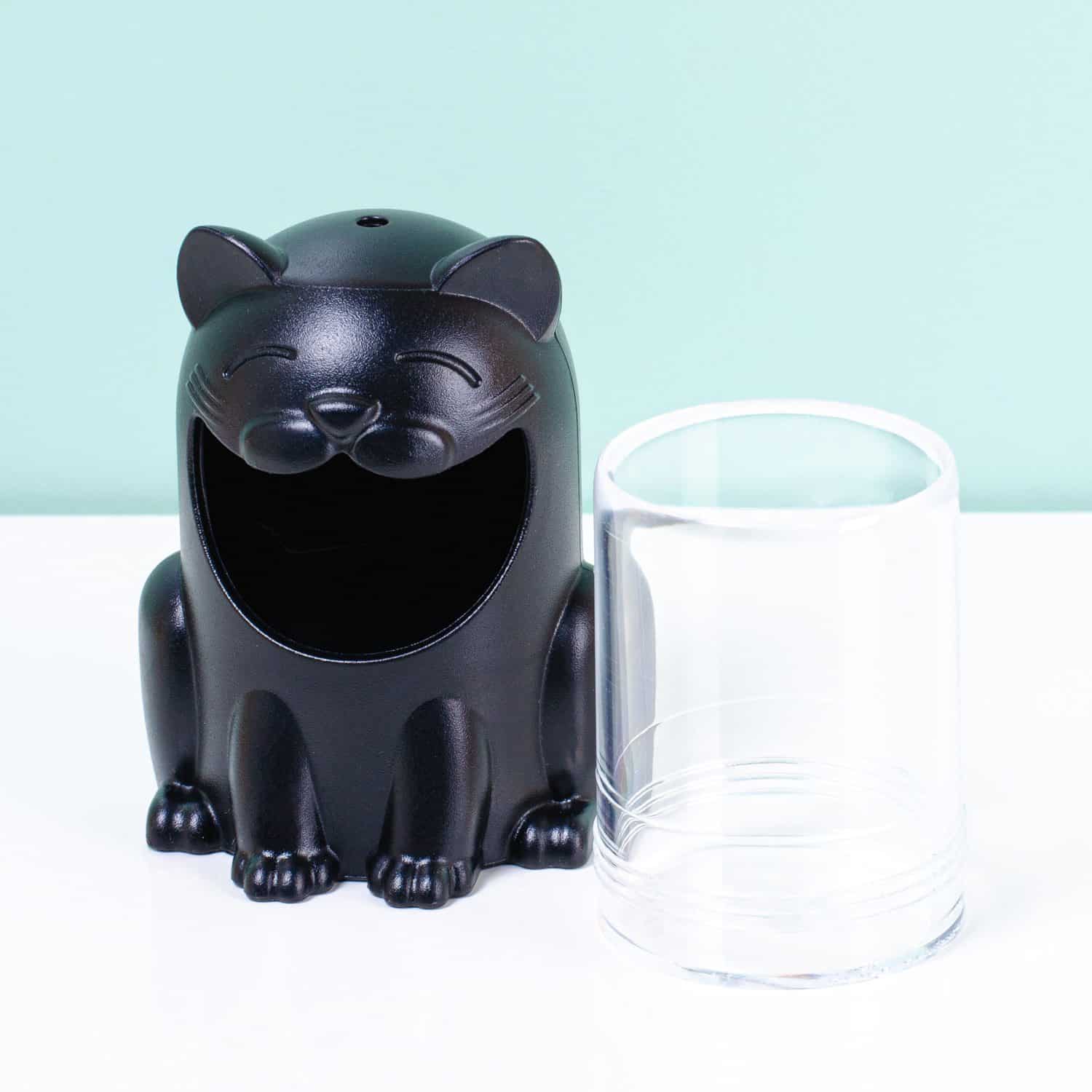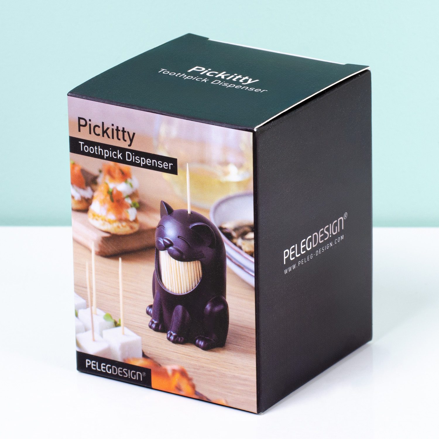 Zoān grote glimlach heb je nog nooit gezien: de Pickitty cocktailprikkerhouder van Peleg Design is dolblij om je te helpen. Deze cocktailprikkerhouder ziet eruit als een lachende kat: de cocktailprikkers vormen zijn tanden. De grappige houder heeft een gaatje aan de bovenkant, waardoor je er op een hygiĆ«nische manier een prikker uit kunt schudden. Handig voor feestjes!
