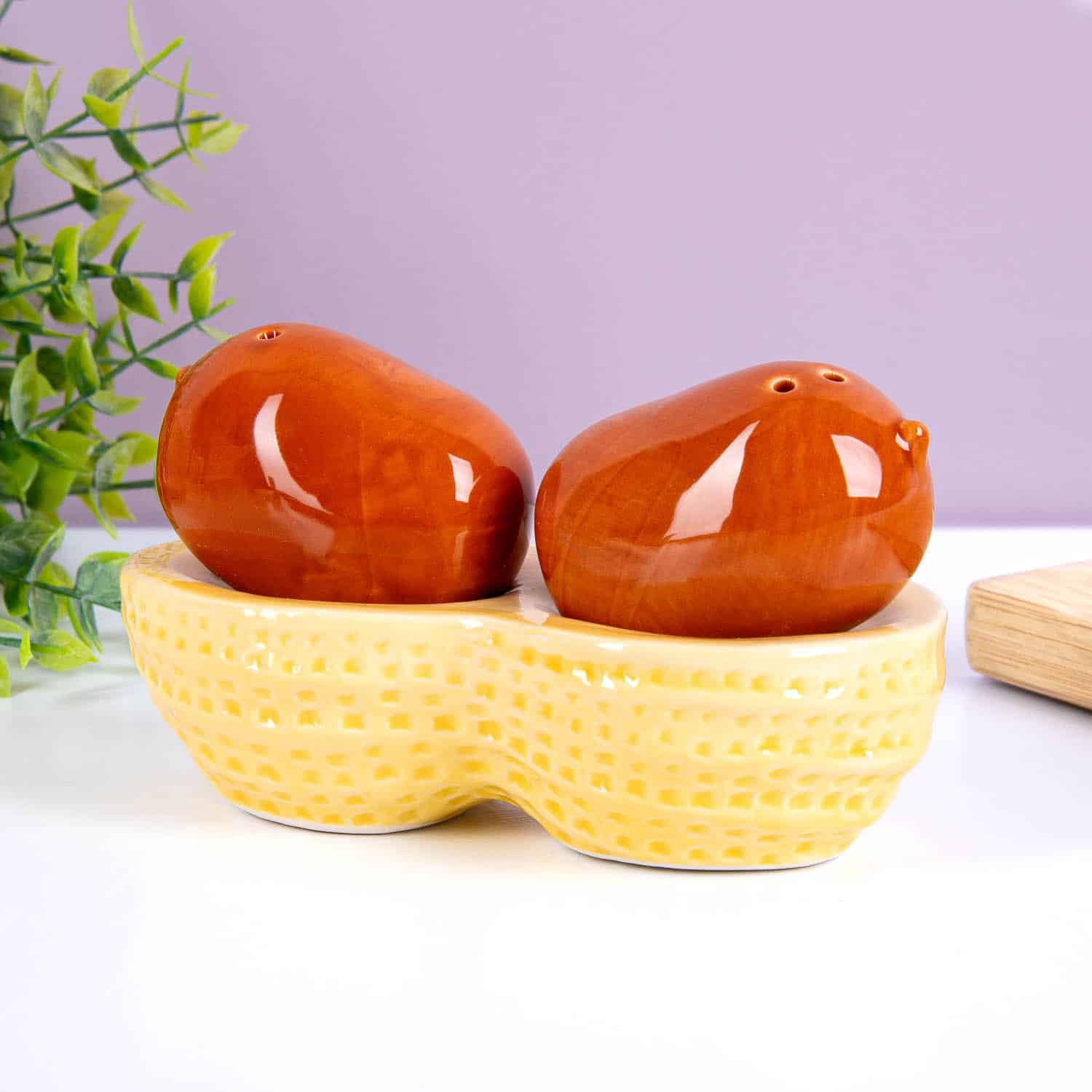 Met het Pinda peper- en zoutstel van Fisura zet je nooit meer een slap maaltje op tafel. In de dop vind je namelijk een peper- en zoutvaatje om je eten snel op smaak te brengen. Dit grappige peper- en zoutstel bestaat niet alleen uit twee keramieken vaatjes, maar ook uit een houder in de vorm van een dop. Zelfs als je het niet gebruikt, is het een eyecatcher in je keuken of op de eettafel.