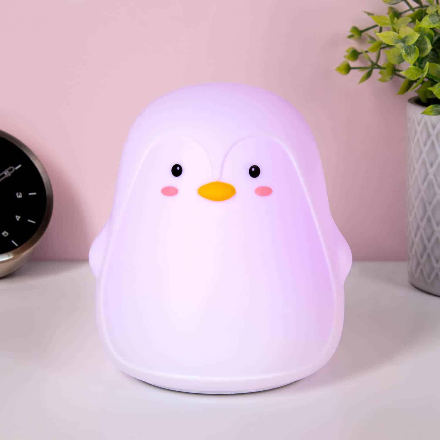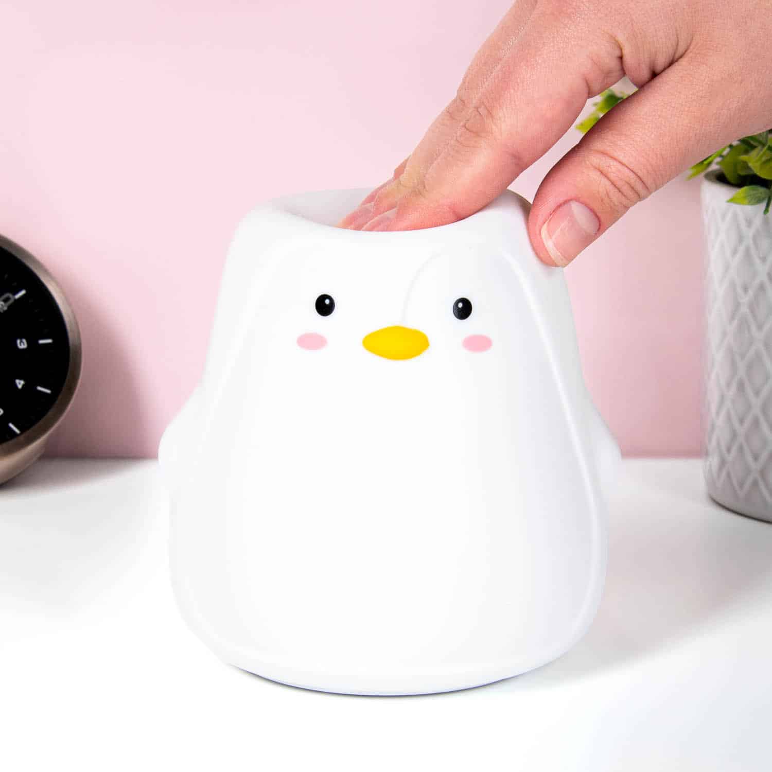 Het Pinguïn nachtlampje van Winkee is een nachtlampje in de vorm van een schattige pinguïn. Raak het aan om van kleur te wisselen en tik tijdens nogmaals om bij je favoriete kleur te blijven. Perfect om je kindje gerust te stellen tijdens het slapen of gewoon als gezellig lampje op de kinderkamer.