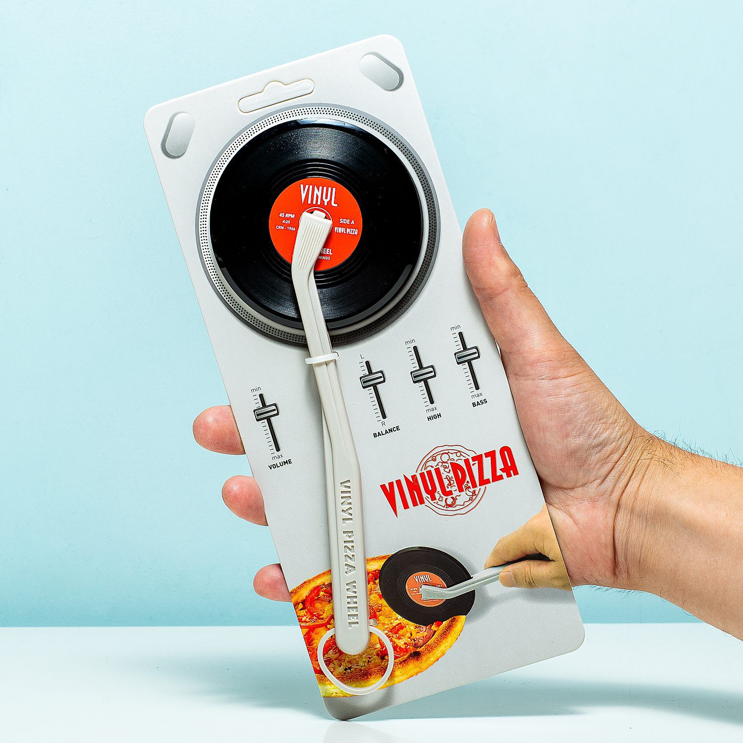 Ken je het leed wat pizza snijden heet? Je kunt een broodmes pakken of een schaar, maar niets snijd je pizza zo scherp en snel in stukken als een pizzasnijder. Maak dit pizzakarweitje een stuk leuker met de Platenspeler pizzasnijder. Deze pizzasnijder ziet eruit als de arm van een platenspeler. Zet een muziekje op en snijden maar! Hoor je die mooie klanken terwijl de Platenspeler pizzasnijder door je pizza glijdt? Het resultaat zijn prachtige, scherpe punten die in een handomdraai gesneden zijn. En dat zonder bloed, zweet en tranen.
